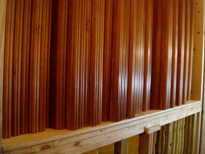 By the way, I'm planning the other treatment for the room. On the side wall panels, I'll use 10 cm. thick 30 kg/m3 fiberglass. Then, if needed, I'll put some plastic on it, or not. We'll see.
