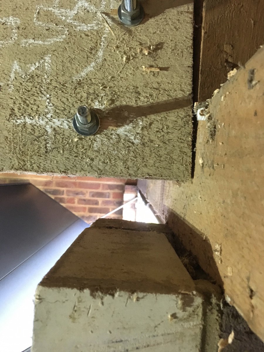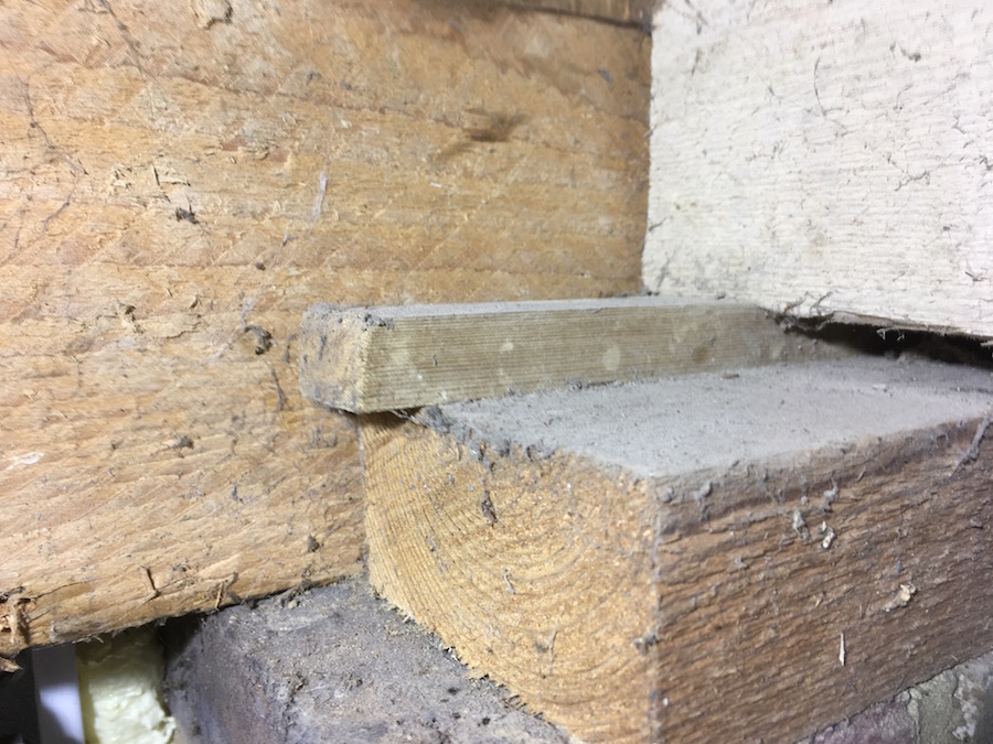 Before it could be fitted the supporting ‘pier’ needed attention because it wasn’t quite as tall as the one at the opposite end of the room . When the beam was originally installed it was levelled by packing the gap with blocks of wood(!!).