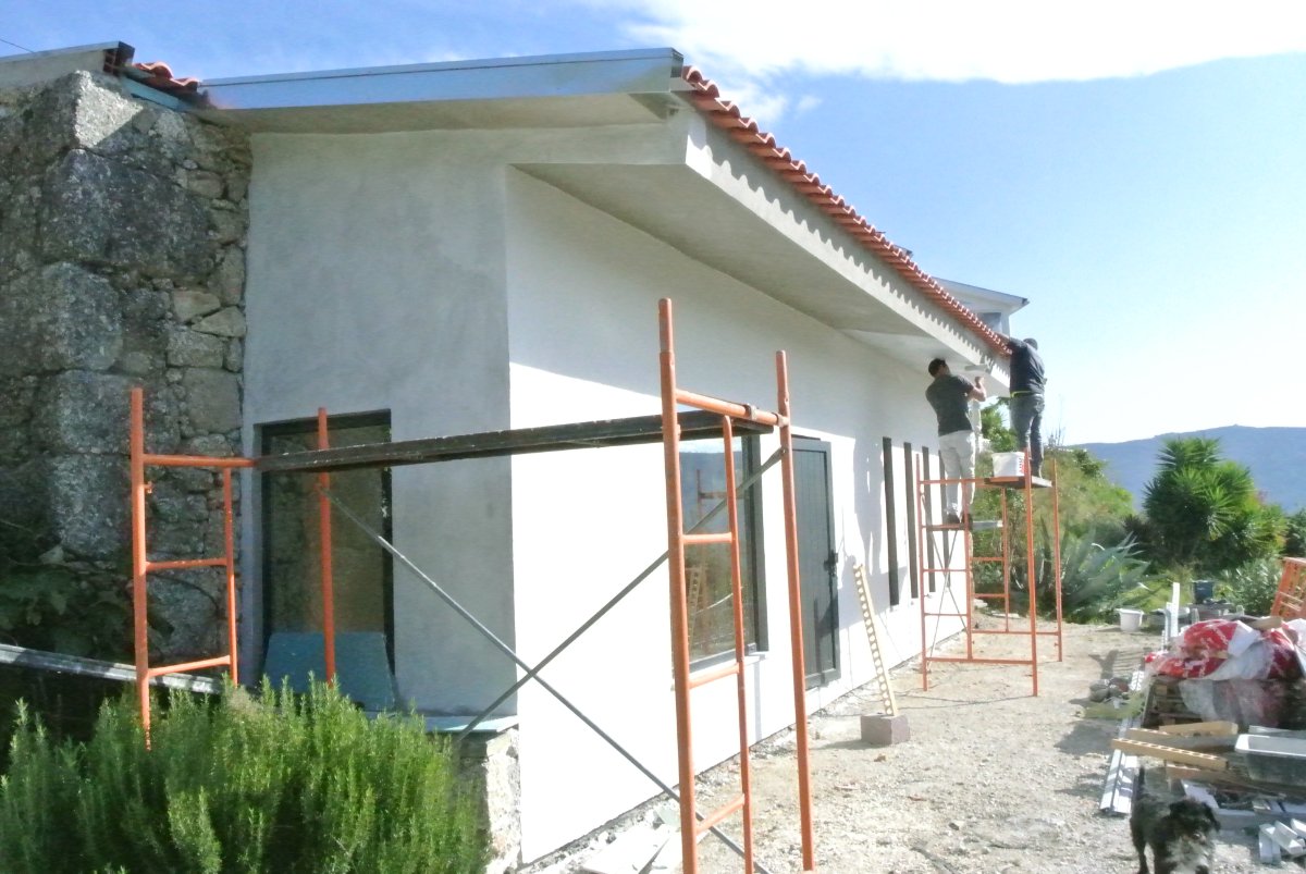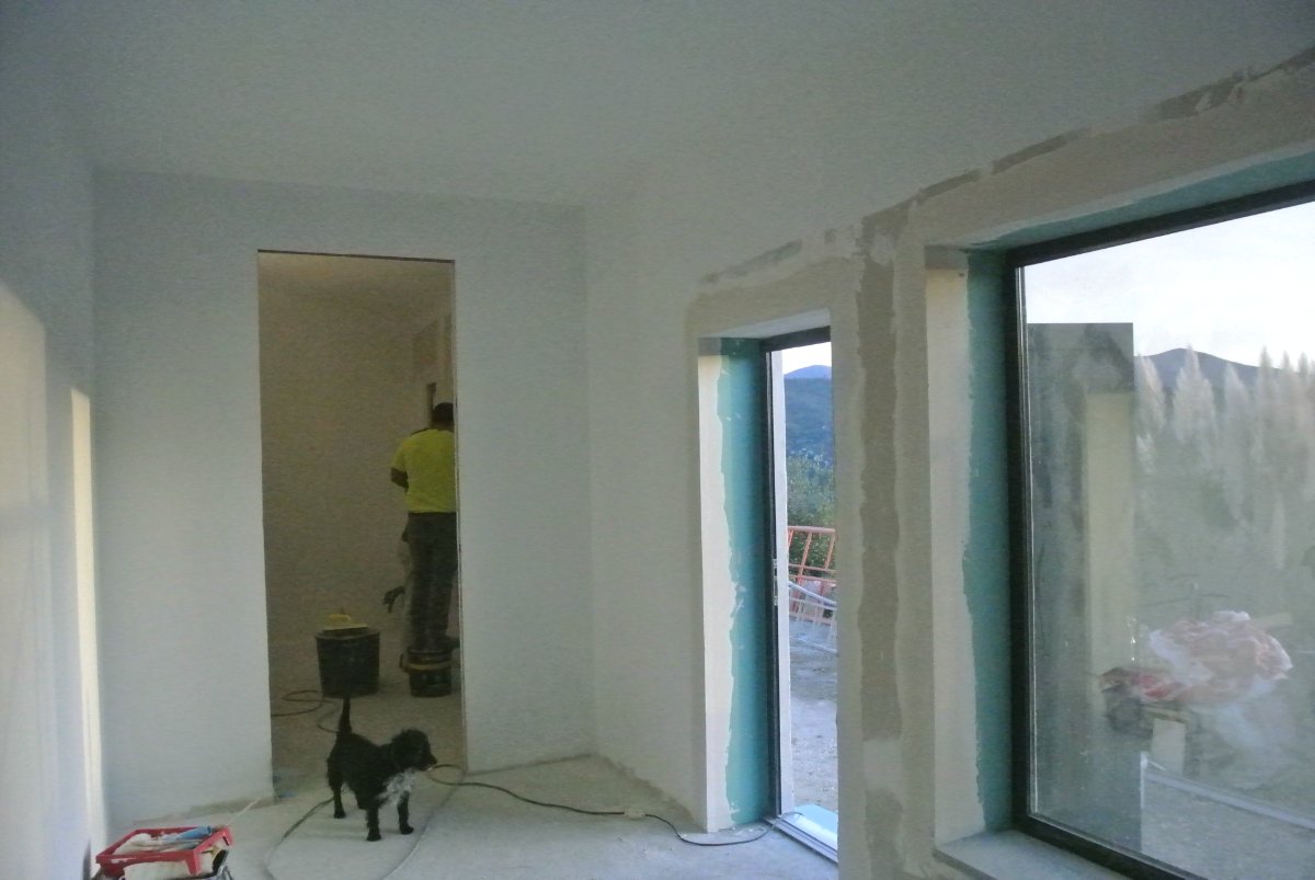The guys showed up about 9 and went to work on the outside windows and front of the building. Later they managed to get the door in and at the end of the day they were putting the plasterboard in the window sills so they can paint this and silicone the first windows and be able to do the 2nd windows. Paul showed up about 1030 and said the wood was going to be about 5500€.. He thought this was a bit high and was asking for a price breakdown as maybe the chipboard will be cheaper at the Veloso shop, where it was like 1100€… He will know more tomorrow. I guess the guys will perhaps start to paint the outside tomorrow? We will see. Anyway, the cellnet board is due to arrive tomorrow or Thursday.