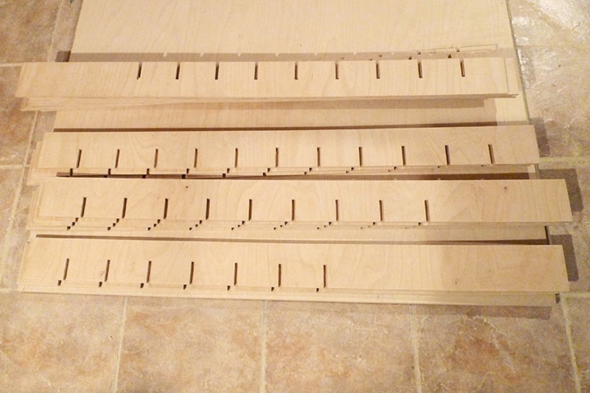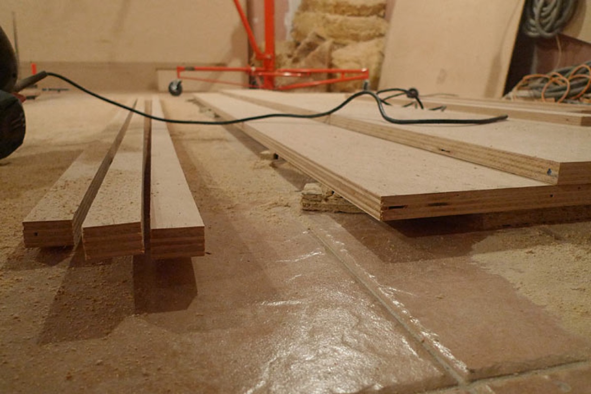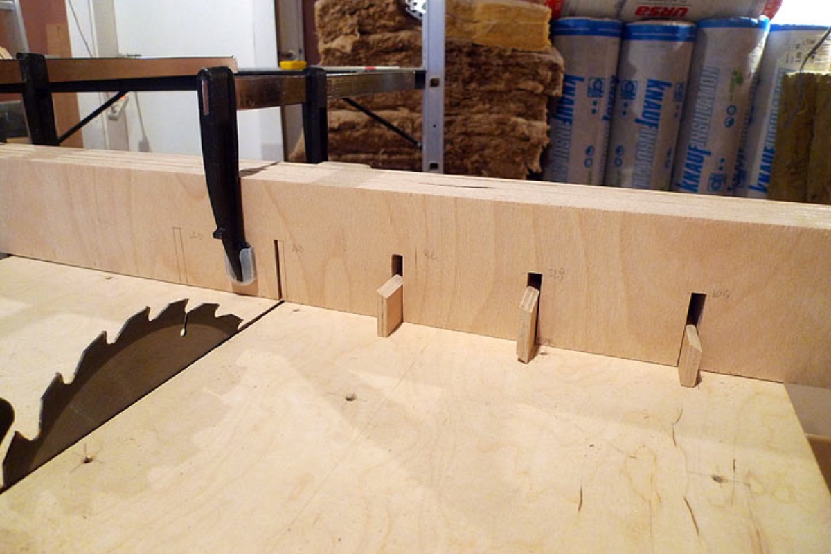 With 15mm of OSB between the plywood and the floor, the blade on my circular saw protrudes apprimately half way, enough to ensure the plywood gets cut and little enough to ensure the blade never risks making contact with the floor. I like sawing boards on the floor as they are stable and level on the floor. Pallets were great supports, as I demonstrated when I cut MDF for my silencer boxes.