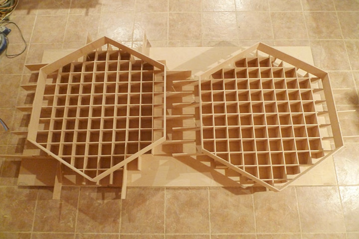 Below the studio ceiling will hang a cloud towards the front part of the room, 2 space couplers beneath the cloud and 7 hexagons towards the rear of the room. The space couplers will be the most challenging from a woodworking perspective so I started with them.