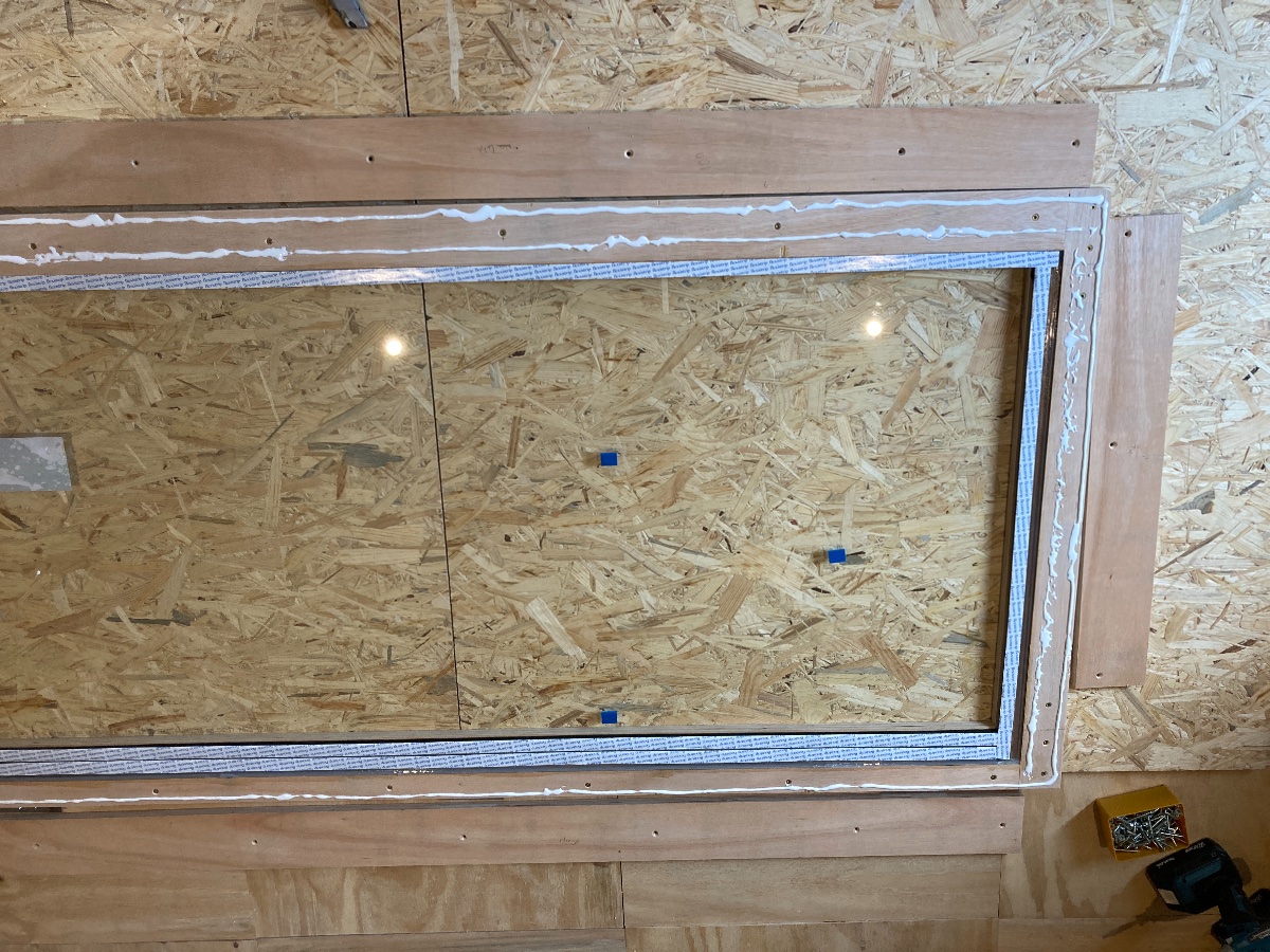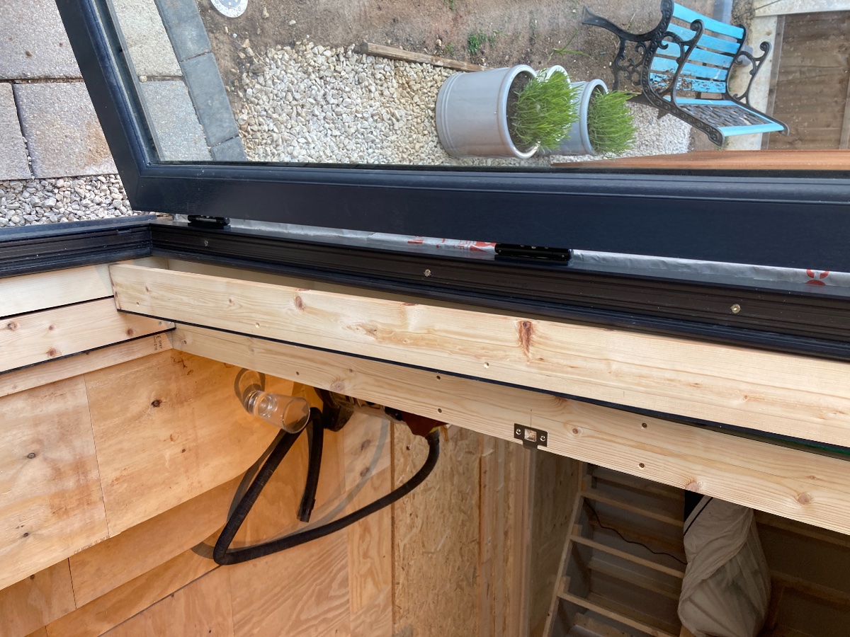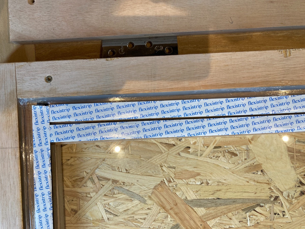 After that I started fitting the door stops to the frame, which are 20mm thick wood with sticky back foam on the edge to give a seal with the door. Did the bottom and one side today and will do the top and other side tomorrow.