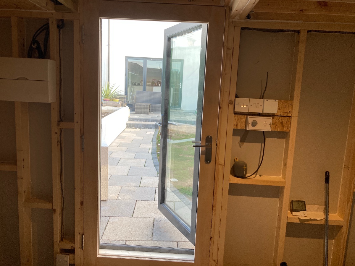 This morning I finished off the door frame and then took all the tools and offcuts of wood out the room. The seal on the door is great apart from in one corner, so I need to get some more rubbery stuff and put that on. I may in the future get a different kind of seal but for now this is good enough.