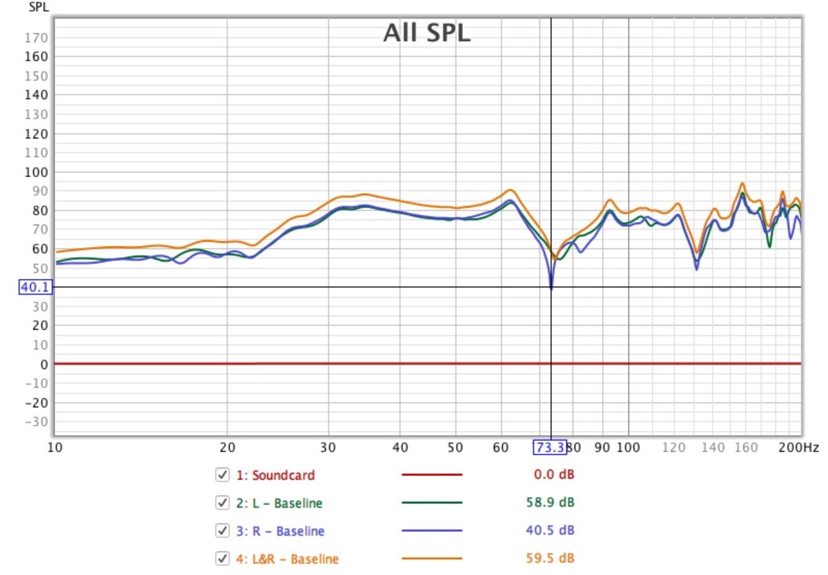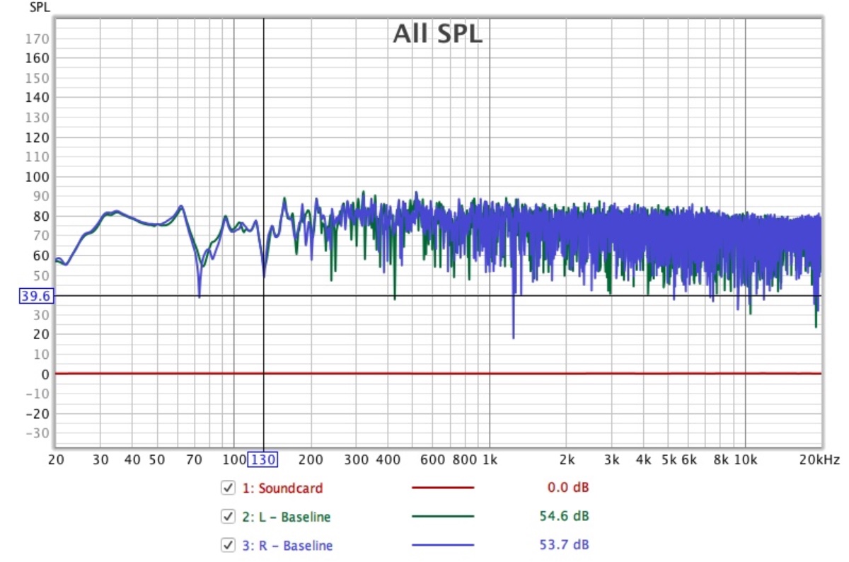 Then, after much faffing I set up REW and my borrowed measurement mic and completed the baseline tests. Initially they displayed such that the R monitor looked quieter than the L but now I've re-loaded REW they look OK. Very odd.