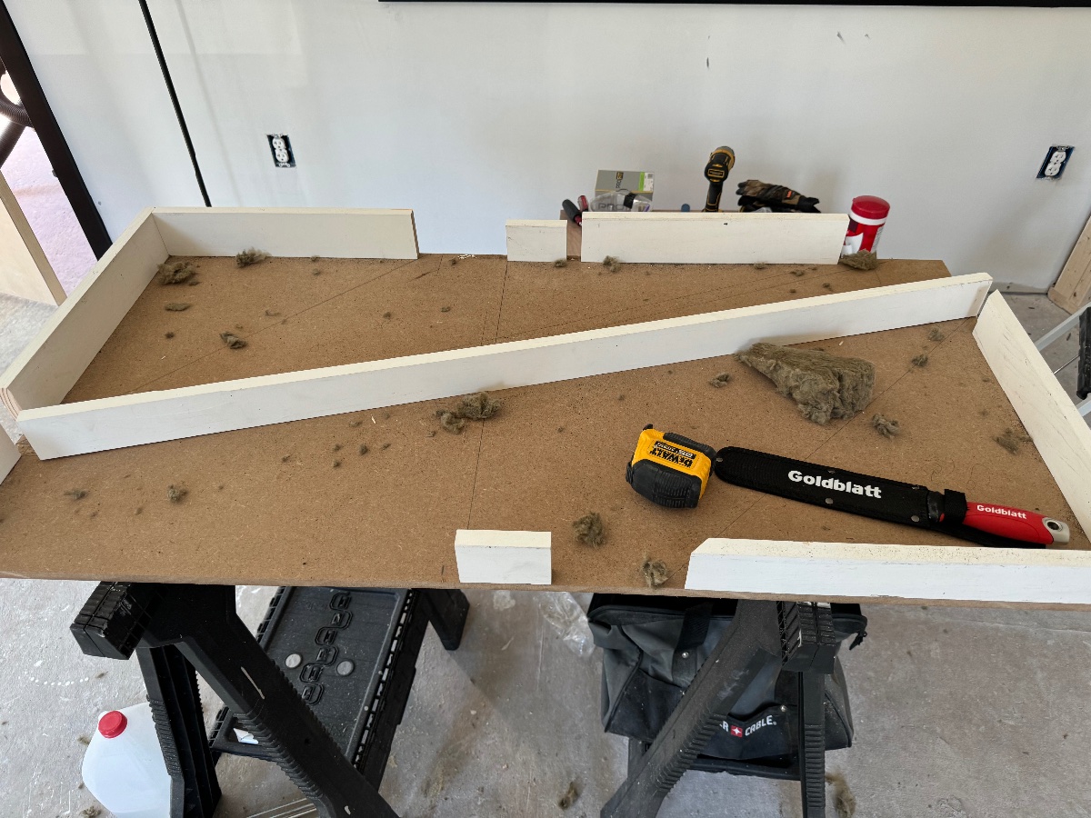 A few updates. First, I’m quite happy to say we are definitely at the last mile, but the last mile and all of its detail really is the longest mile. I’ve been checking things slowly off the list. Recently made an insulation cutting jig for the many complex cuts I need to make with my rockwool. I wish I could go back to the past and tell myself to pay a bit more attention to the material sizes to reduce waste, but here we are.
