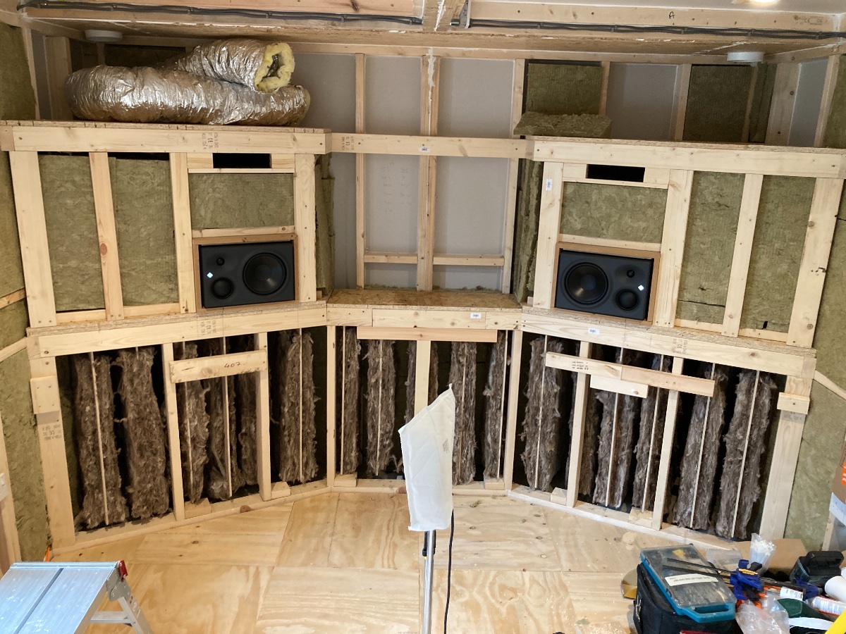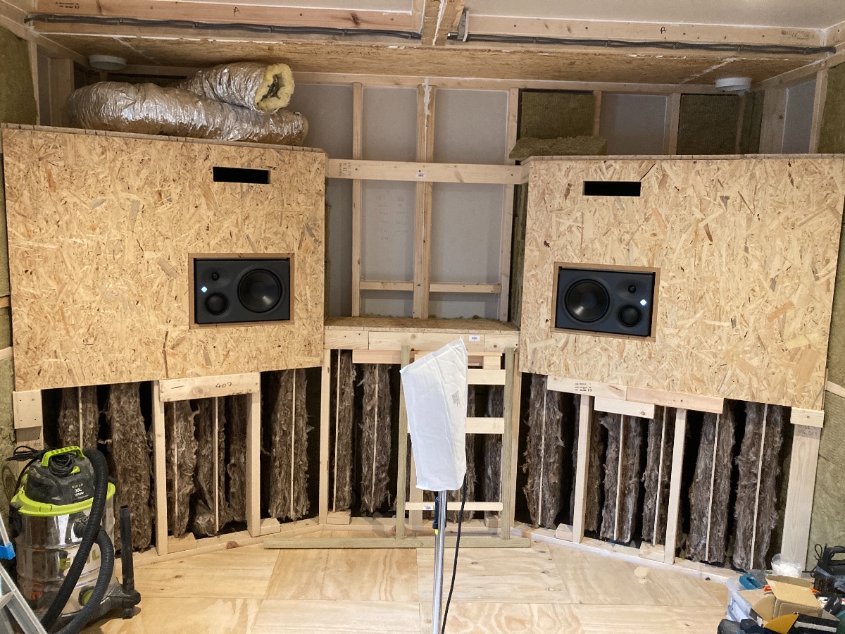 Just a question to check my logic: the OSB can touch the speaker box because it is isolated from the monitor by the sorbothane. The plywood, I guess, cannot touch the monitors as that would be a flanking path. Does that mean there is a gap between the plywood and the monitors?garethmetcalf wrote:Source of the postPlywood up on one side. I had to re-do the template for this as this layer goes around the edge of the speaker, rather than around the speaker box.
