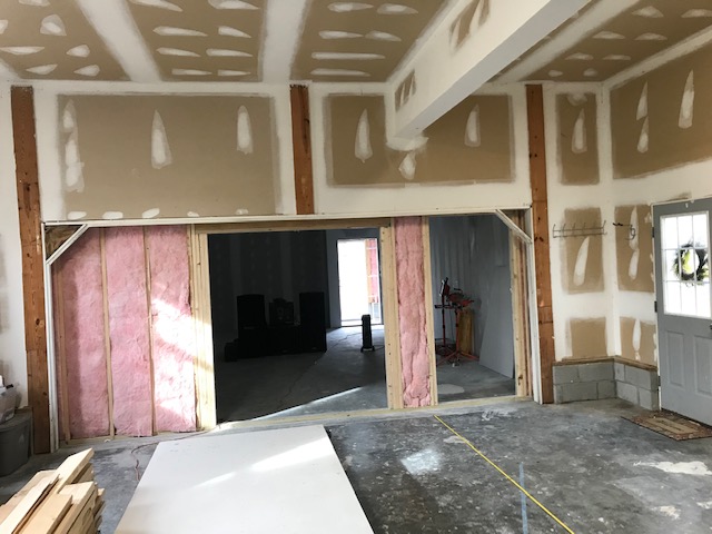 3) Do I need to finish out the wall of the outer shell where there used to be the old garage door? Its the wall in-between the 2 rooms. If I finish this wall out technically there will be 3 walls there. I would need 3 pieces of glass for window as well. I'm really confused on what I should do here.