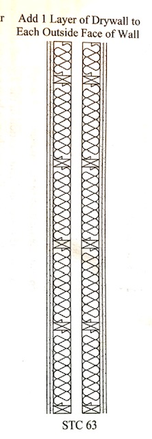 (2) If I build my control room like drawing would I use 2 layers of Drywall with Green Glue inside Control Room and 2 Layers of Drywall with Green Glue on outside of control room on same studs? 1 wall assembly.