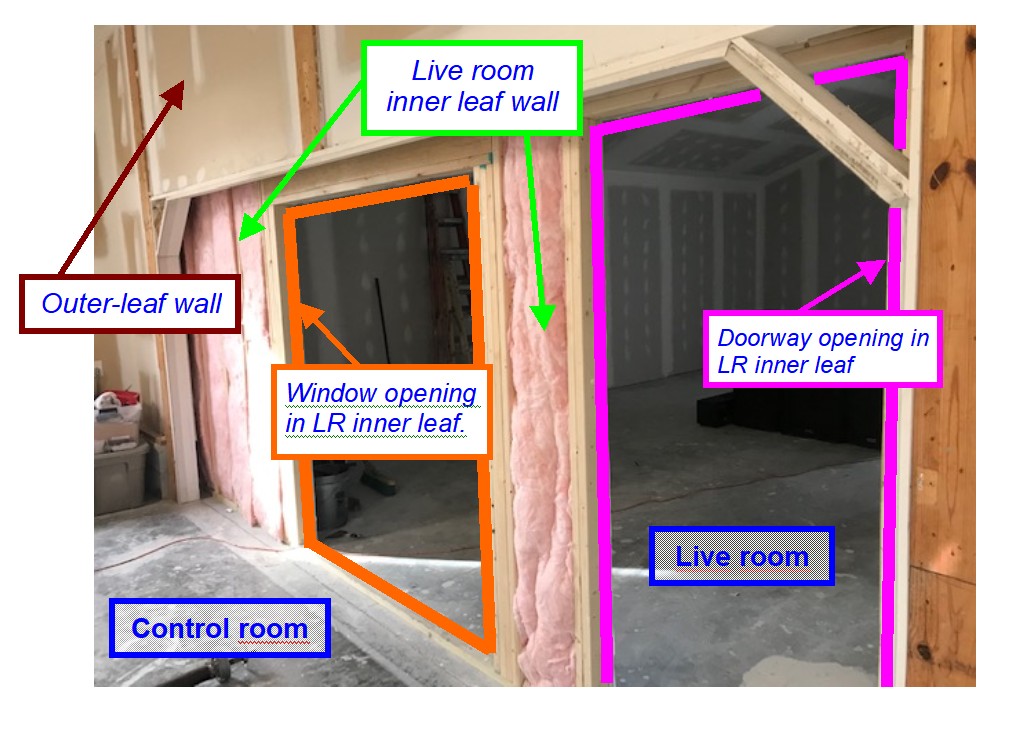 First, I want to make sure I'm see things the right way: SoulShaker-room-question-1.jpg Is that correct? The LR is over on the right of that photo, beyond the wall, the CR is on the left, the pink insulation and framing visible in the middle is the inner-leaf of the LR wall, and the other wall (closer to the camera, drywall and framing only, no insulation, built inside-out) is the outer leaf of the building itself?