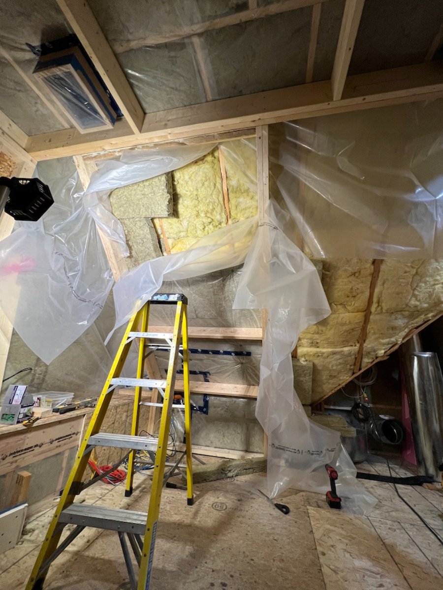 Jag94 wrote:I don't know if you mentioned this earlier, but it appears that on the gable wall, you have rockwool insulation, but in the rafter bays you're using fiberglass. Is that correct or am I missing something? If so, what was the reasoning for this?