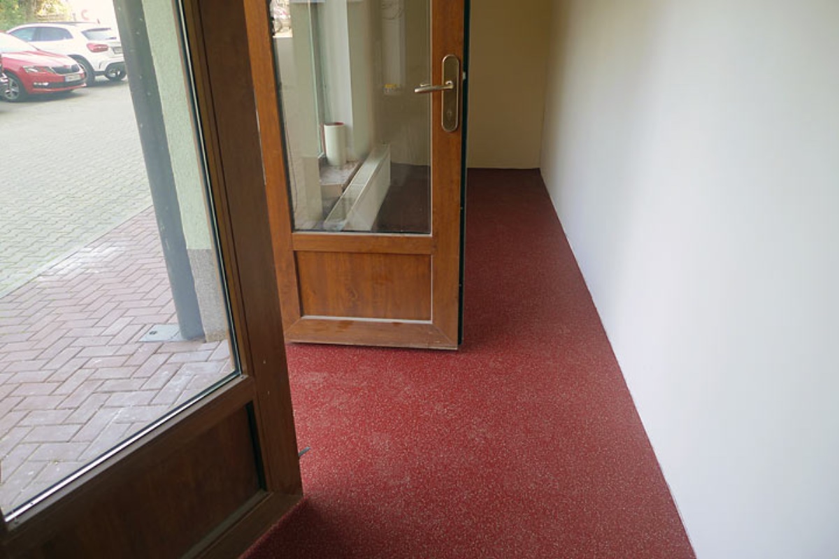 Starting with a dry run to figure out the best way to do it; Regupol in one direction and the floor in the other direction.