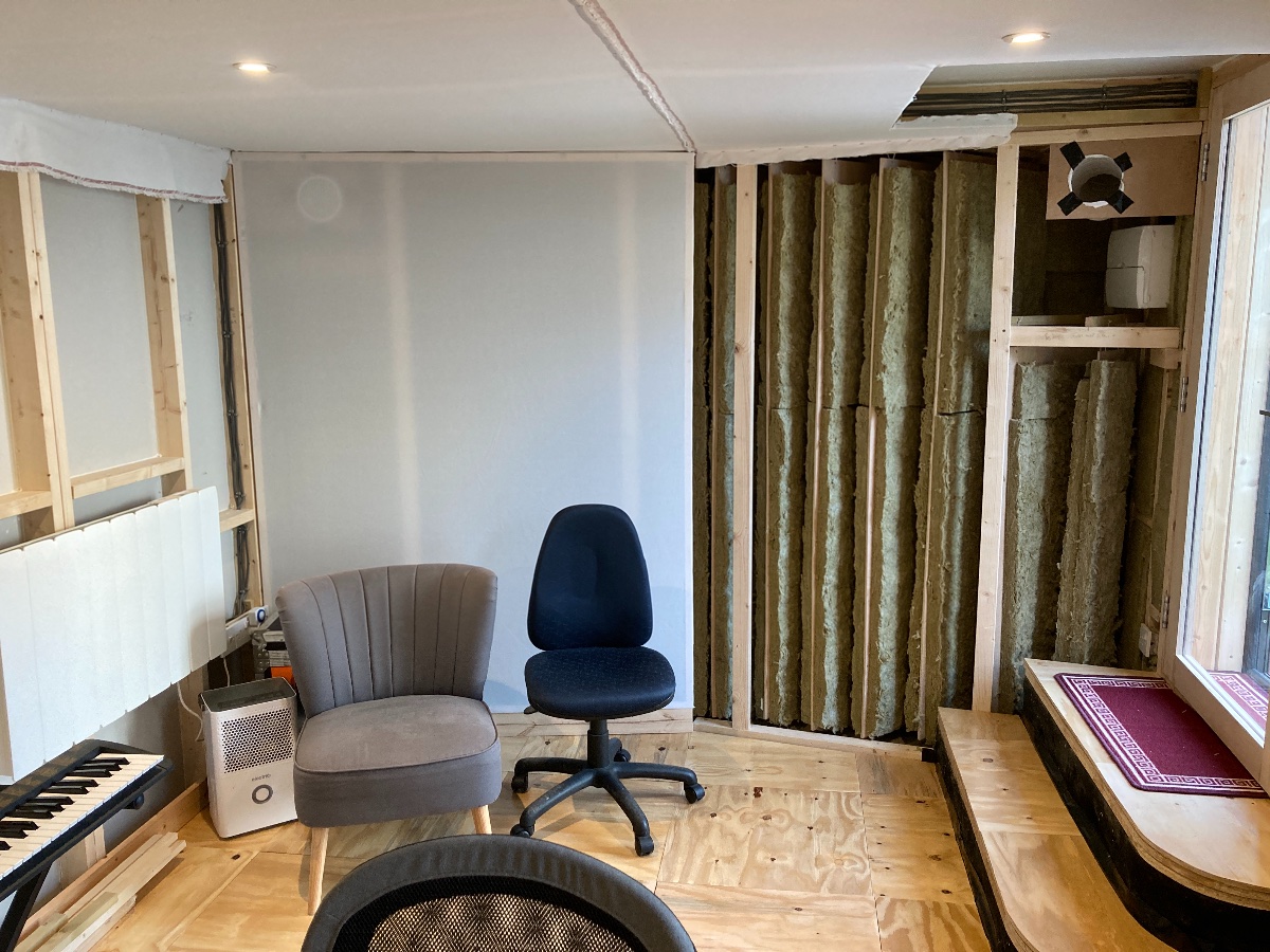 I have some of the green vapour barrier stuff from Wickes that was used variously on the build so I might try stapling some of that up at the back to see what the effect on reverb time is. I’d be worried that it might make noise vibrating potentially, so I might not cover the whole back wall... hmmm