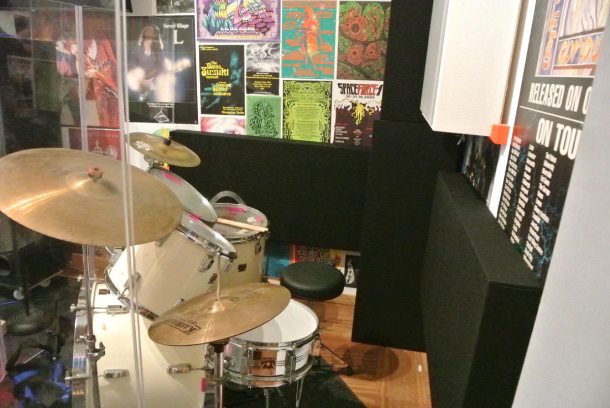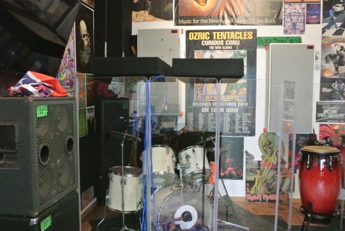 I have managed to install bass traps in all the corners and we have made a sort of drum cage with plexiglass panels and then some bass traps hanging from the ceiling and I have to say this has smoothed out the room great and it very pleasant for bands and we get an excellent drum sound still..
