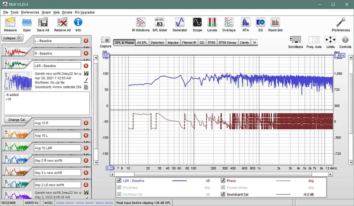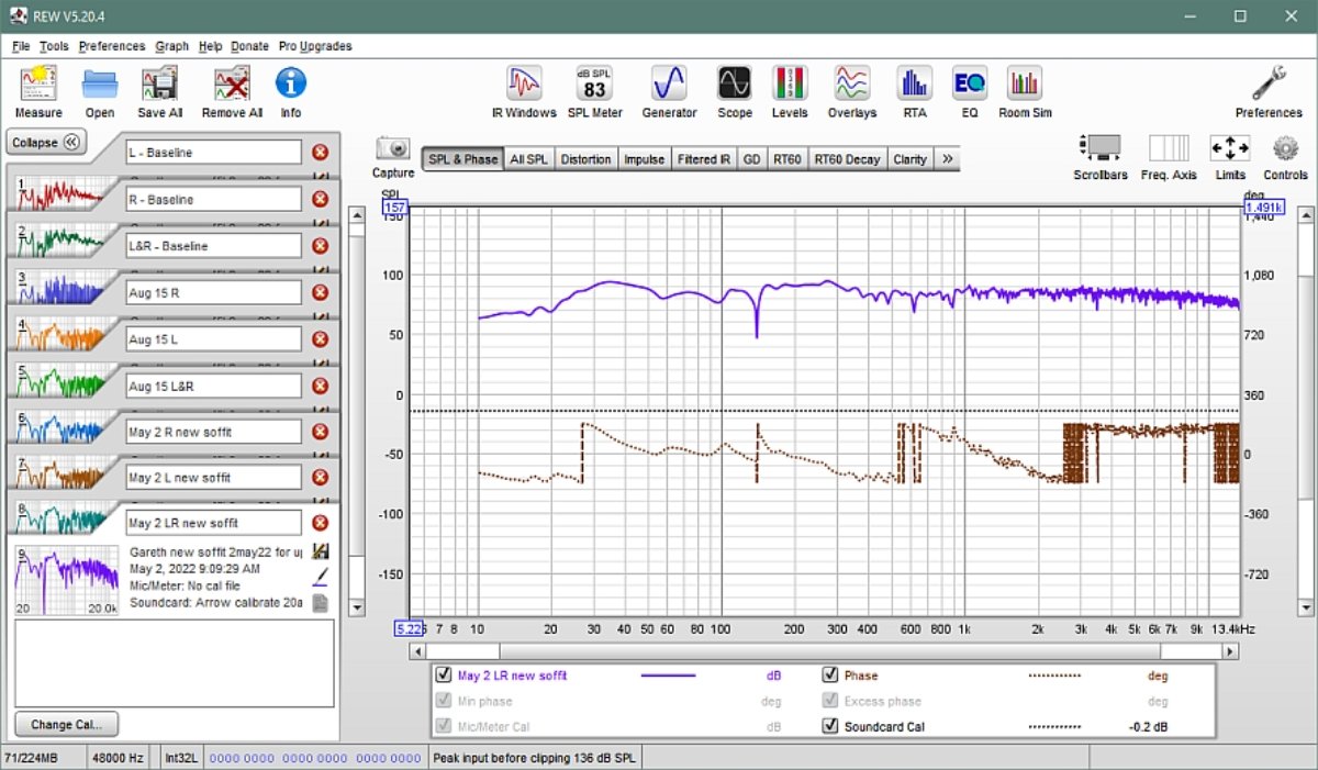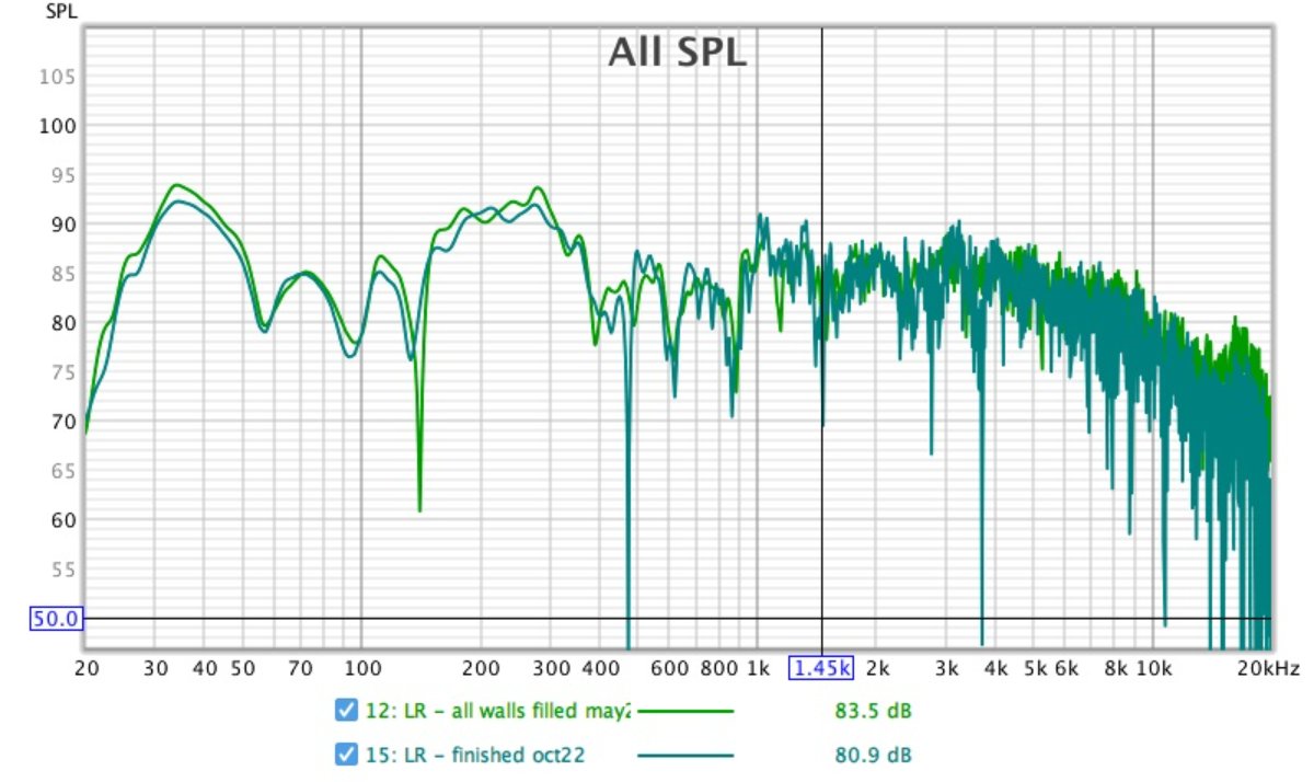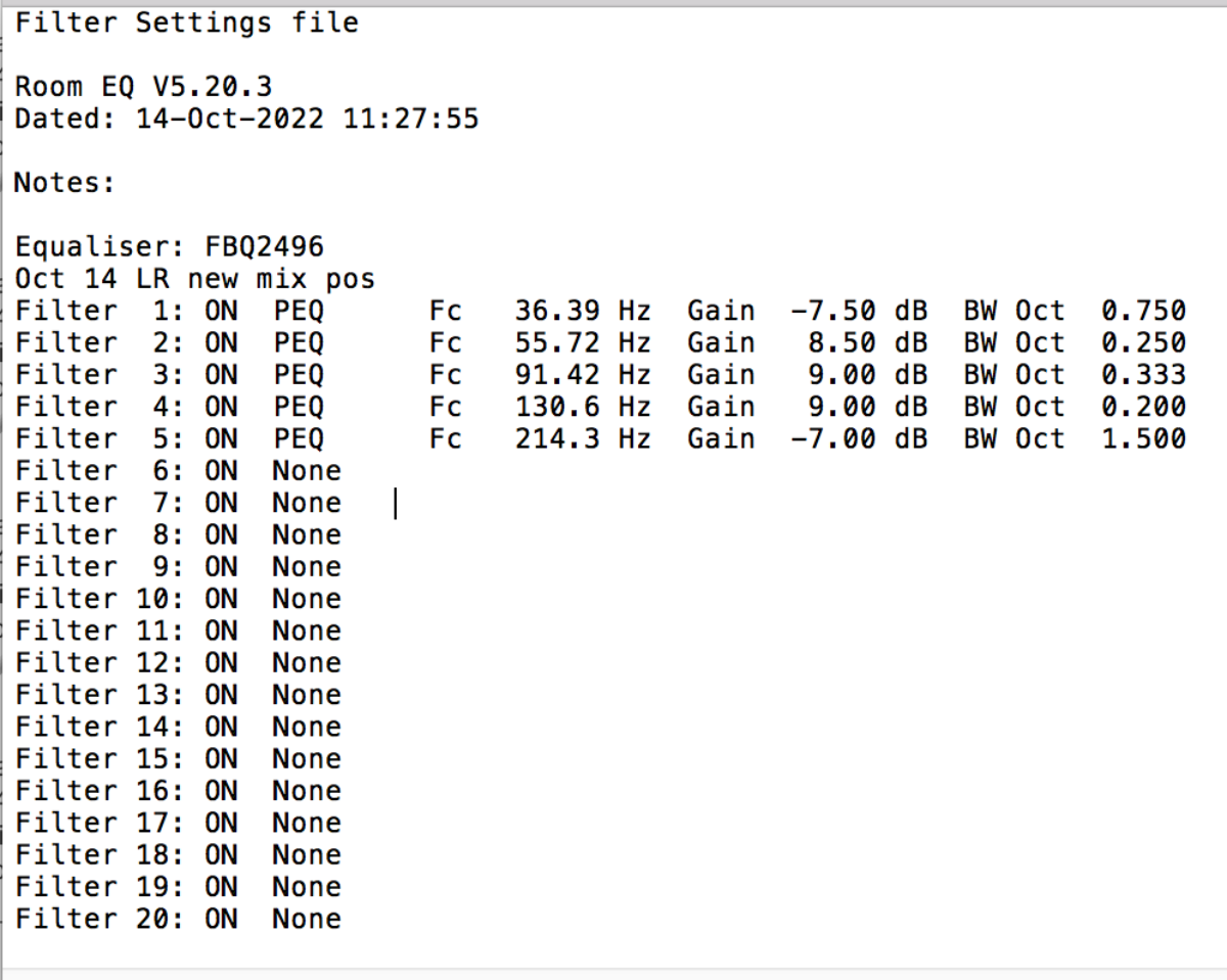 The two REW files are below - the one called 'Gareth Oct22 tweaks tuning' shows the effects of the FBQ box, whereas the other has all of the steps getting up to this point.