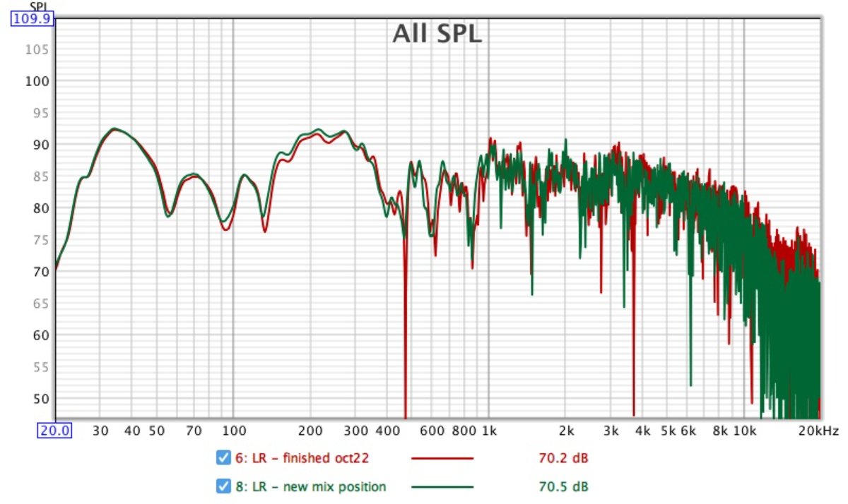 I have already moved my mix position forwards approx 6", so here's the comparison of different mix positions.