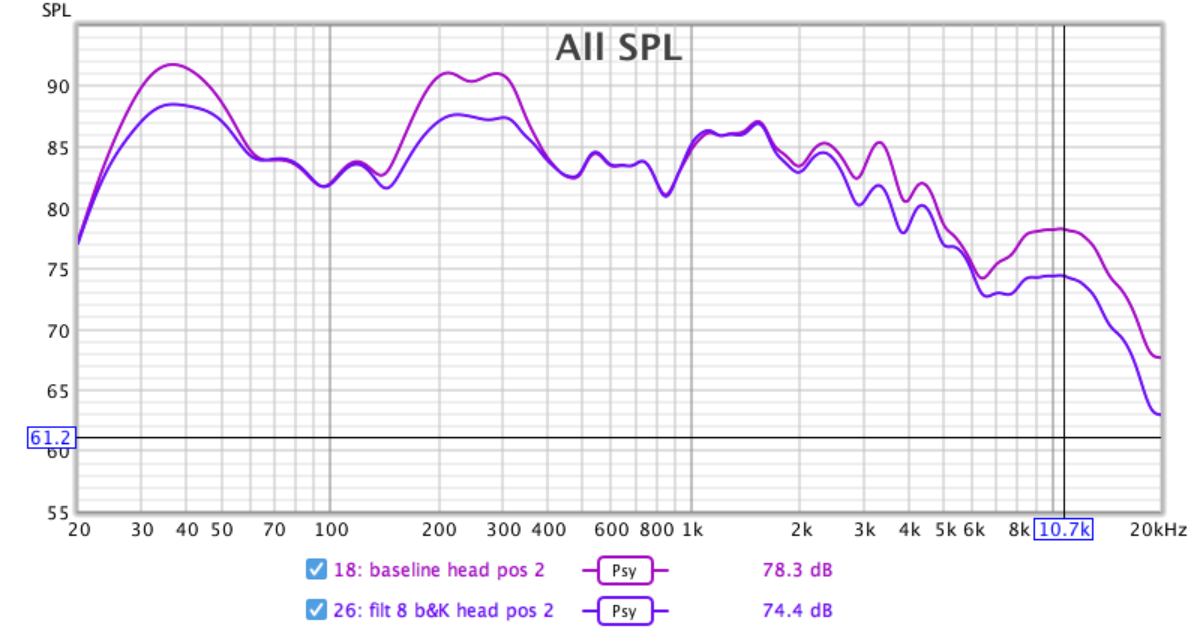 Looking at it for the B & K I noted some frequencies and the approximate SPL reduction at those points for fitting a curve to.