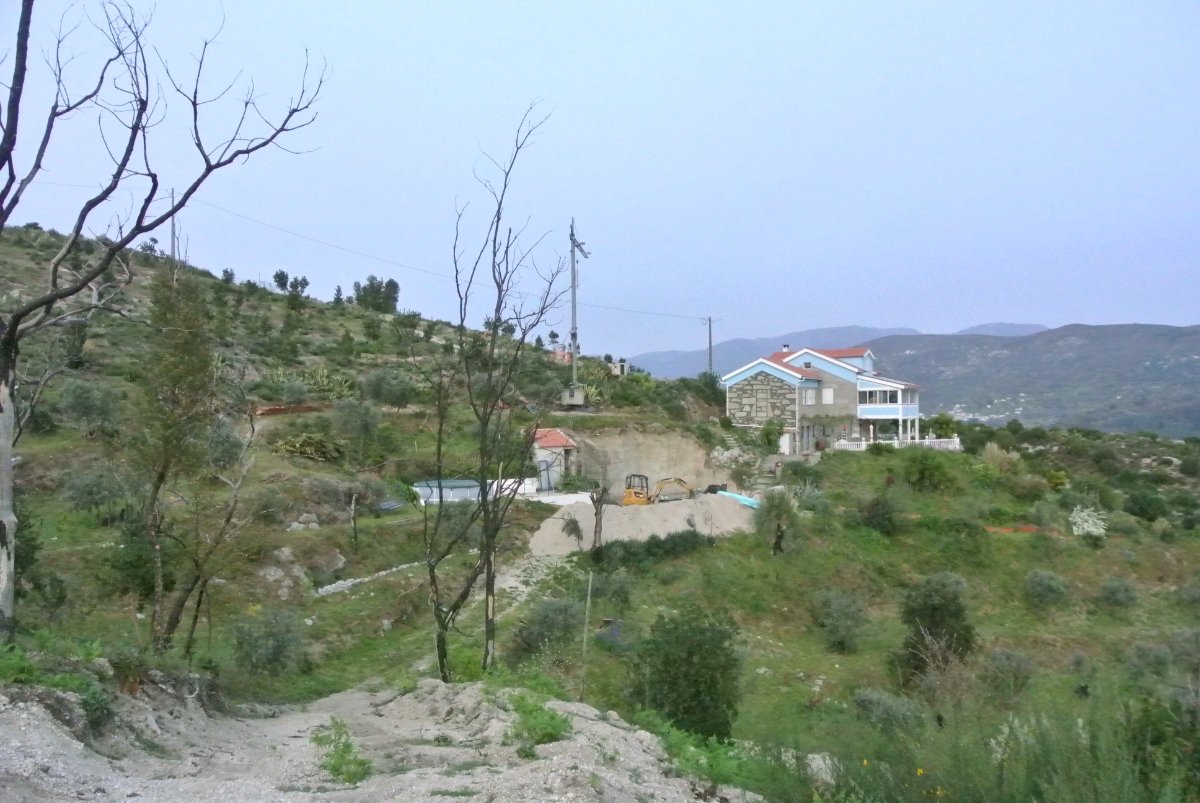 Paul left at 16:30 today and had cleared out the area and marked where the foundation will go. The wife is very upset as the building is sticking out much further than she thought and also is closer to the house. The only option to not have it come out so far is to build it further into the hill. The steel for the foundation was delivered at 18 last night.
