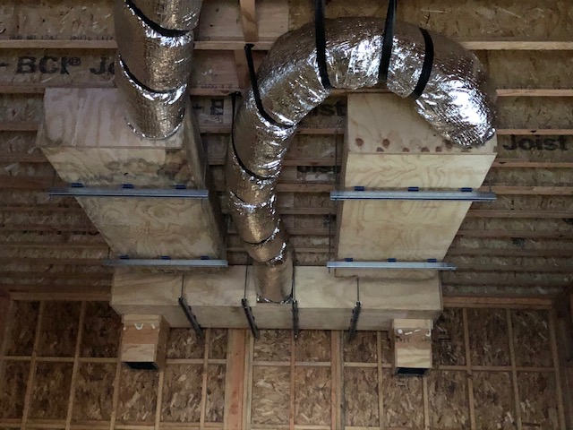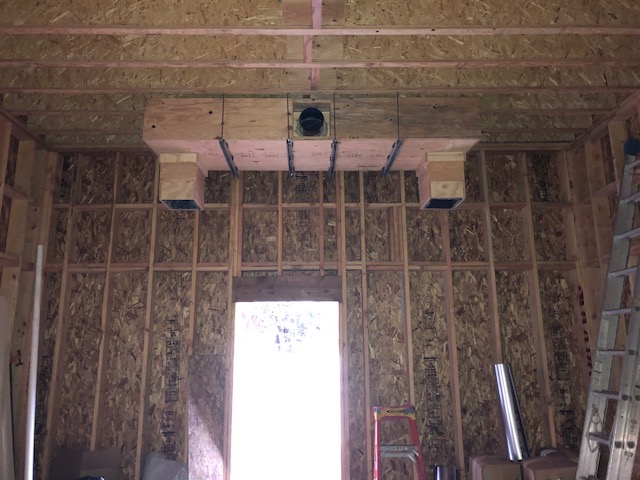 It is the latter. I hired you to design the HVAC only. I did share your sketch-up design with the draftswoman and GC, but those details were not included in the approved plans. Plus you didn't give dimensions for joists and you had inside-out walls which was not in my plan and some other details that you were going to clean up but never did due to saving time and just being busy and it wasn't what I was paying you for. I totally appreciated having those details and if I were to do it again, I would have paid you to design the whole studio with every detail spelled out. The other thing is the GC is not doing the HVAC. I have hired a HVAC company to do that. That company has all your sketch-up jpgs and they will follow your plan EXACTLY, which I am going to emphasize LOUDLY! Of course everything needs to be timed correctly. That said, the GC did screw up the timing. Instead of doing 24"OC and then constructing the roof, and then bringing in the HVAC, he did 16"OC, then put the first layer of OSB on top of the joists, and now the roof. Because it is winter and it's raining, they wanted to get the roof up but for some reason did the OSB first I believe so they could stand on it while constructing the roof?He's also not reading the plans correctly! either that or the plans he has are not taken from the ones I did for you