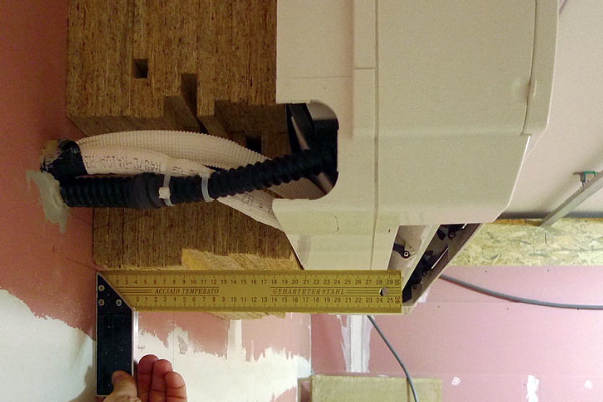 I mounted multiple layers of OSB so that the AC unit is further into the room as there will be a 28cm deep trap beneath it.