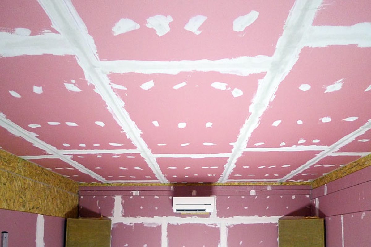 All done, OSB and 3 layers of fire-rated plasterboard, complete with plaster and tape. Backer rod is in place in all corners - ceiling-wall, wall-wall, wall-floor. Caulking will have to wait until next week.