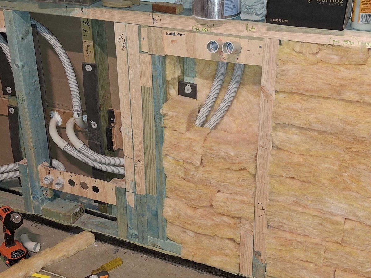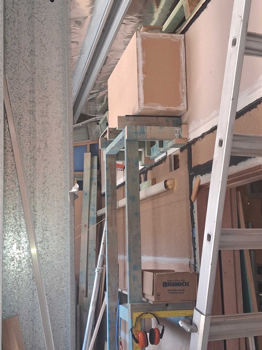 While this issue has been solved, I’ve burned a lot of time solving it and executing those plans, whereas had I designed it that way, I’d have run the C section through to the wall frame before sheeting and avoided the work-arounds on the wall behind the silencer to fit the plenums. Solved – but I reckon it cost me 2 months in extra work time.