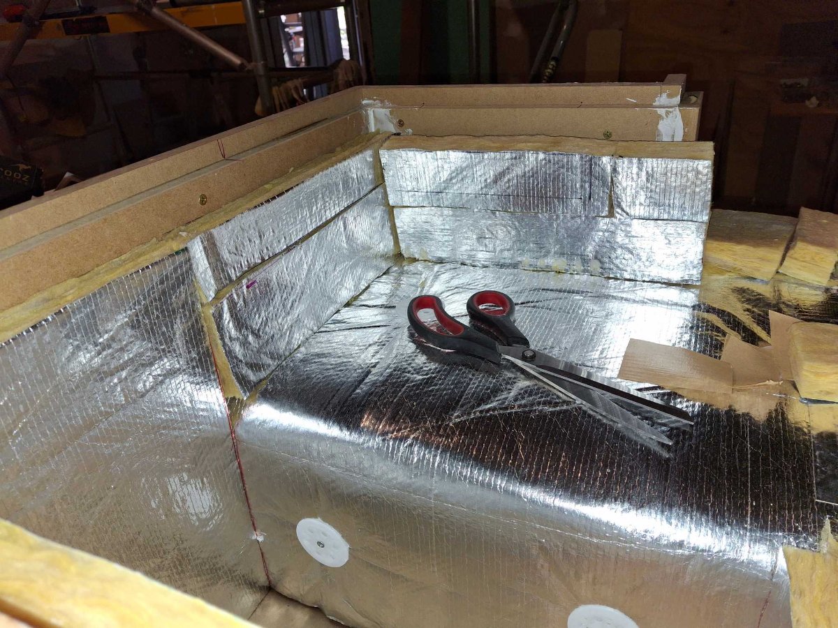 I have completed and mounted my 2 LIVE ROOM inner silencer boxes and the 4 plenums. :D The inlet fan (and associated ducting/filter) is installed and I’m part way through completing the outlet side duct work. This will also have a fan pulling air out – in an earlier post I noted that the passive pull in the CONTROL ROOM wasn’t clearing the Co2 at an acceptable rate, so I’ve gone with one fan pushing air in and another pulling out. Once the LIVE ROOM is done, I’ll loop back and install the outlet fan on the CONTROL ROOM as well as the CONTROL ROOM outer door.