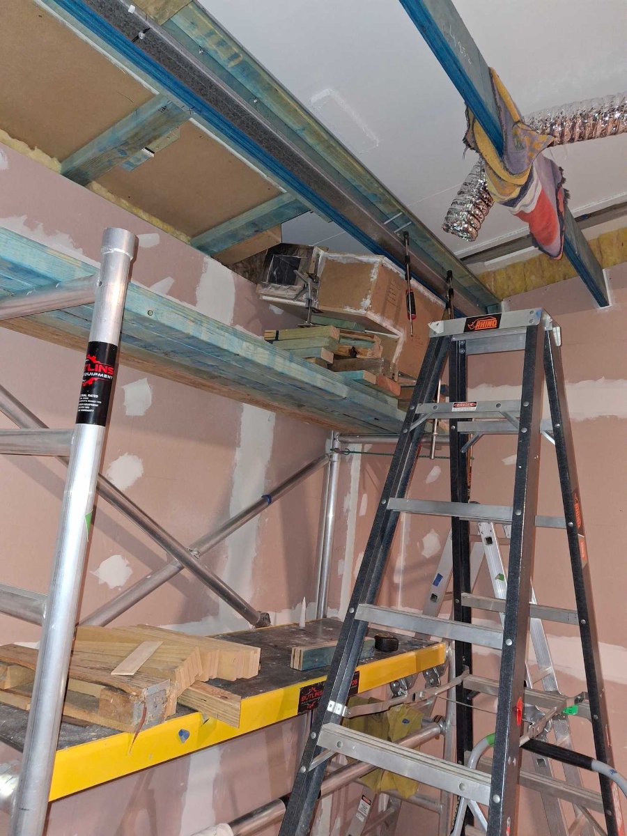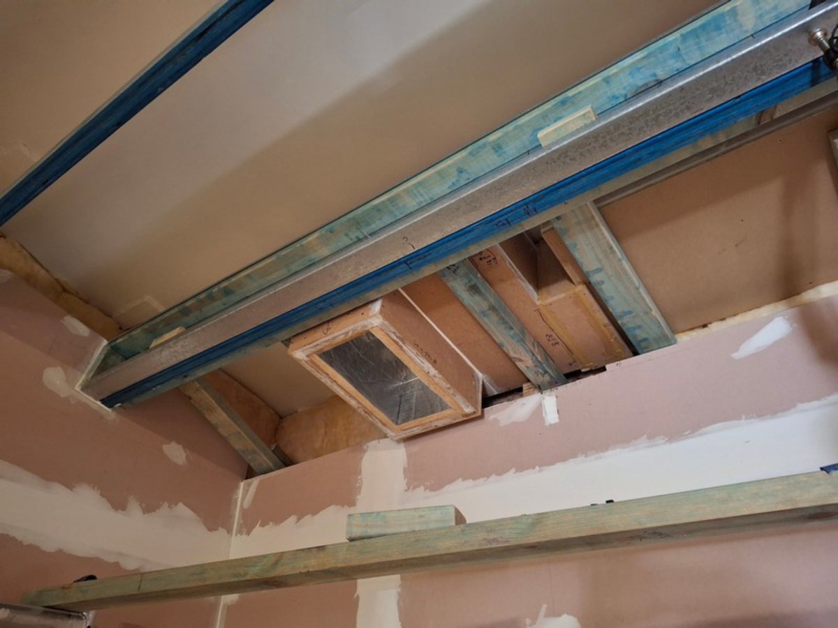 I had a conversation mid 2024 with my engineer about the introducing plenums to slow air speed further. This conversation was prompted by the increase in the load on the ceiling joists. The outcome was that I required some extra strengthening on the joists bearing part of that load. (The frame for the silencers/plenums runs from the wall to the first joist)