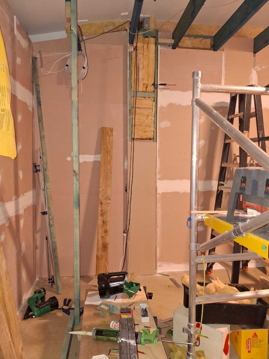 Slightly out of time sequence but some shots below of the completion of my LIVE ROOM walls. Amazing how you go much faster with experience!