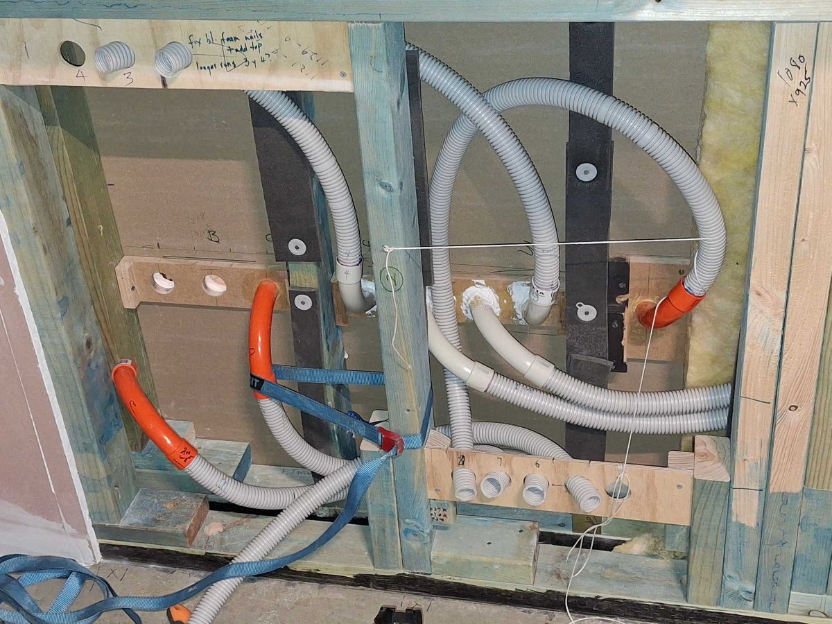 I also worked out how I’d run the audio and related cabling between the rooms. I have run the conduits and am now sealing the 2nd layer penetrations. I’m using “Big Stretch” on these again. There is probably a smarter way to do it but that's what I did :D