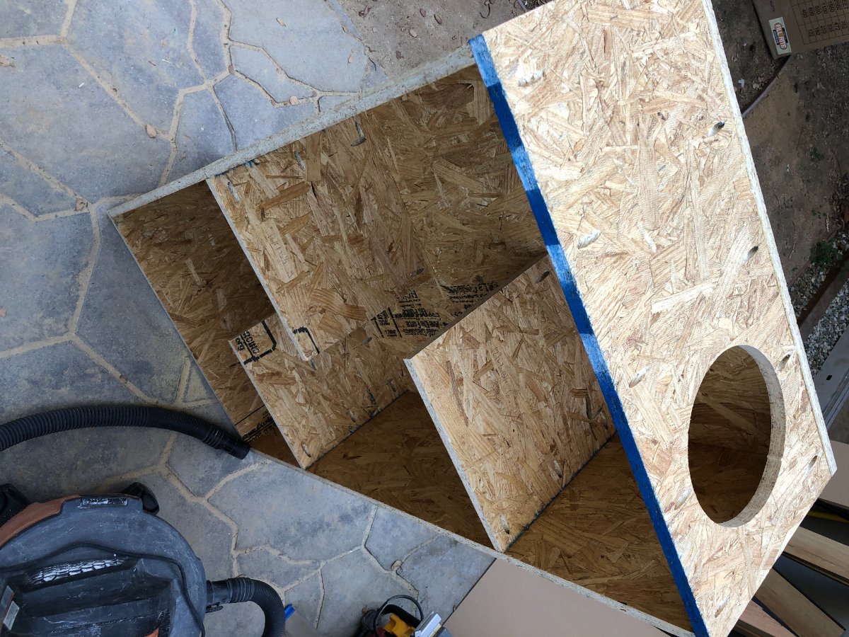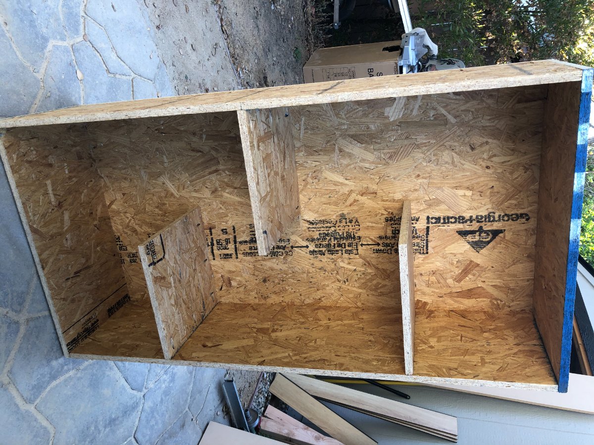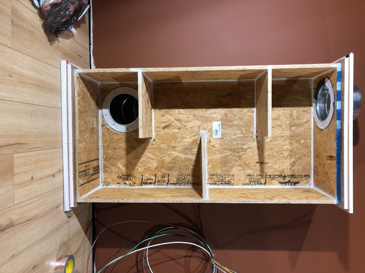 Next up is the construction and installation of my silencer boxes. I designed these a few months ago, and I knew the dimensions were "big", but I didn't realize HOW big until I actually constructed the damn things. They're HUGE! But that's the point, right? I had so much OSB left over, that I used those instead of MDF. Since these are going inside the room, and being mounted on the floor, i decided to make the extremely mass loaded. So they will be 3 layers, OSB>green glue>drywall>green glue>drywall... the same as my walls.
