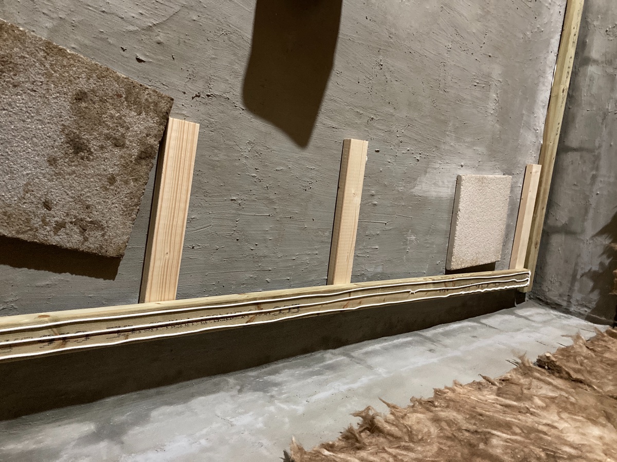 In preparation I’d already insulated the cavity, fixed up a vapour barrier and silicon sealed a treated 4x2 to the floor as a sole plate.