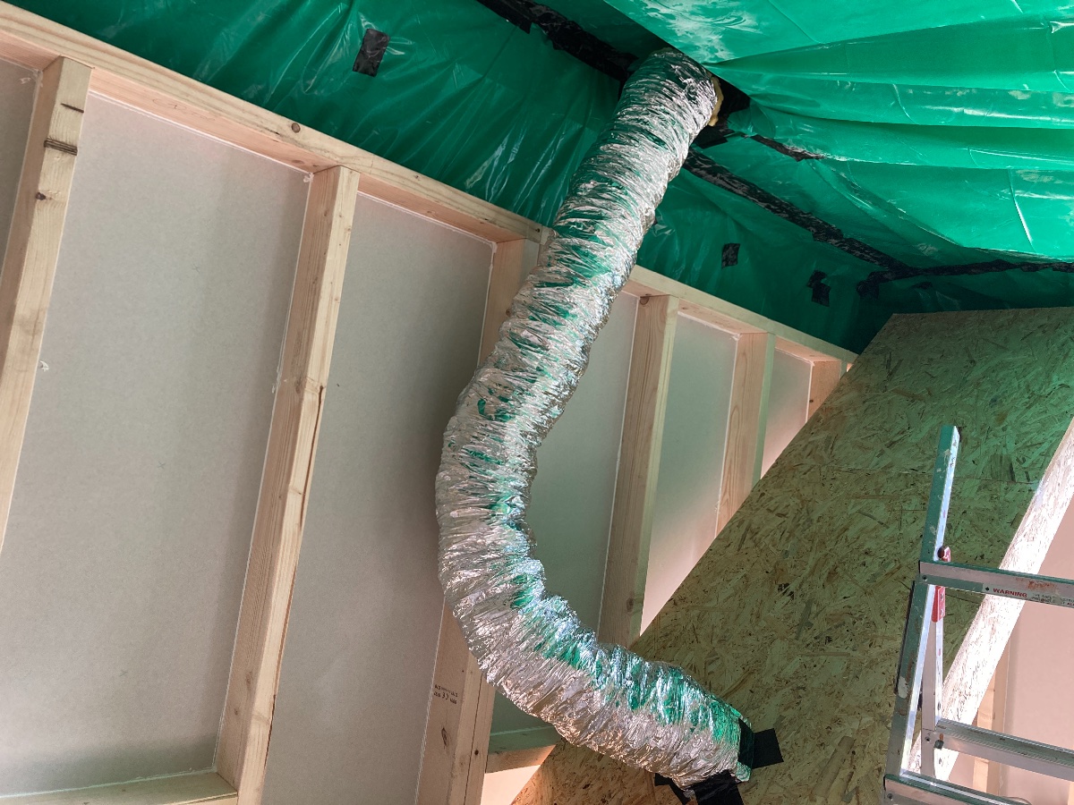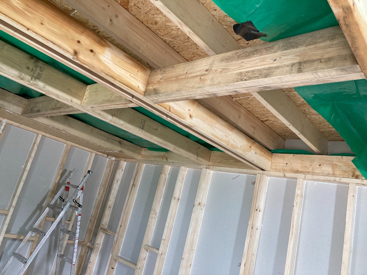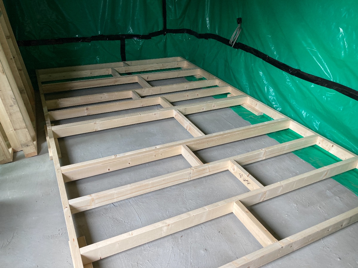 Today I have caulked all the stud bays, put more vapour barrier in the ceiling cavity, and insulated and vapour barriered the floor. The screed for the floor is being poured tomorrow.