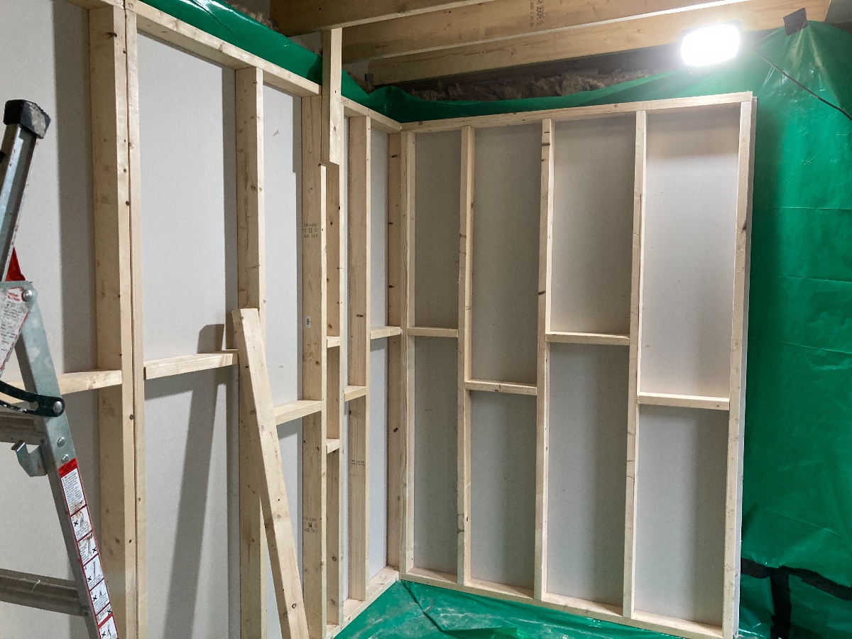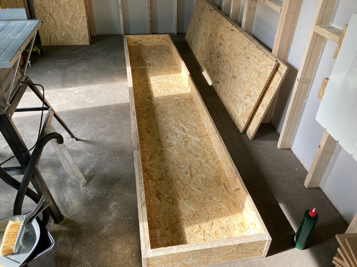 I did two layers of osb for the sides that will face thw outer room. I’m concerned how I’ll get these up on to the frames but that’s for me and my Dad to figure out tomorrow. I nearly finished one and the other is 2/3 done but I ran out of screws and spray glue.