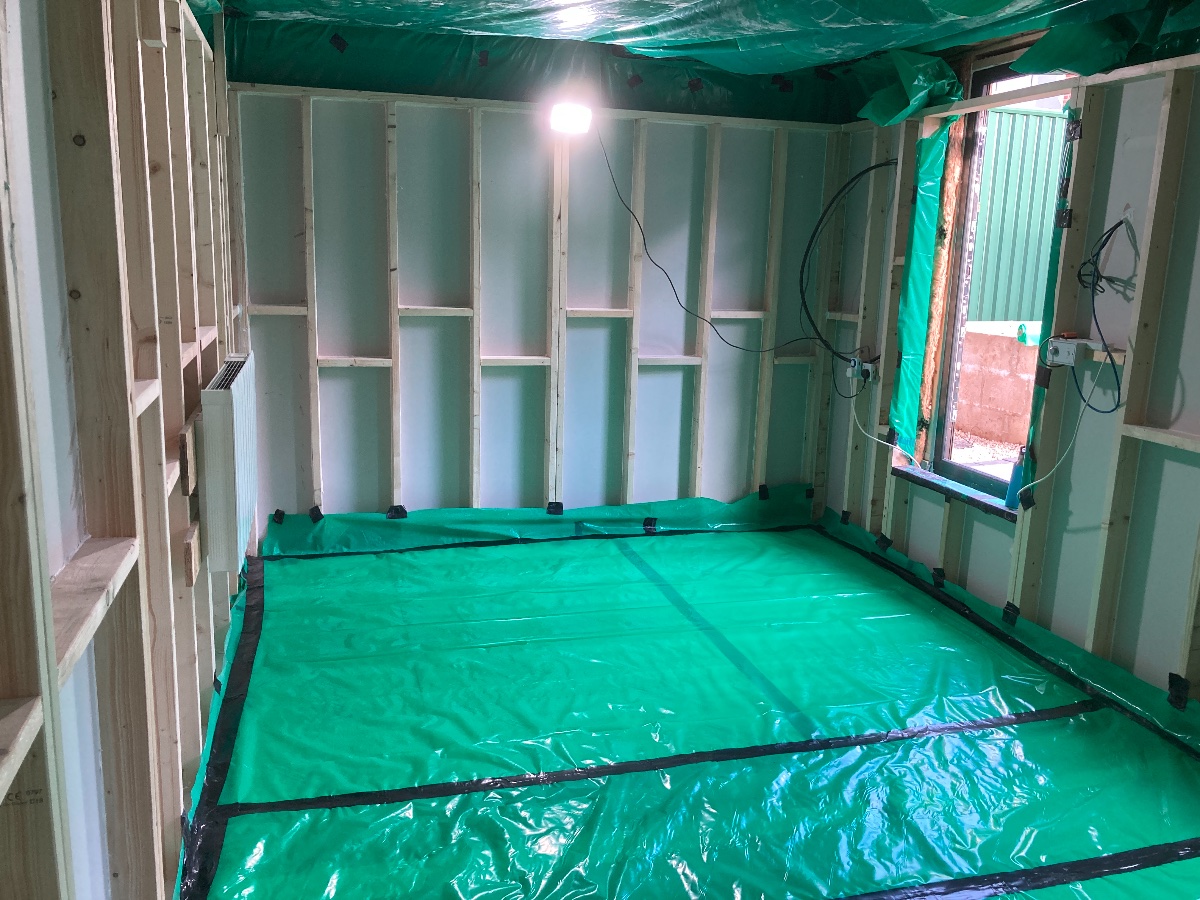 I then put up some of the vapour barrier which will stop condensation damaging the plasterboard - mounted on the ‘warm side’ of the insulation. More of that to do tomorrow and then I’m ready to start building the wall sections!