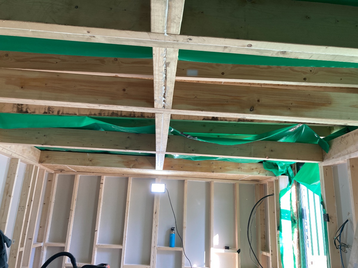 Studs drying ready for making walls, as the tarpaulins they were under were not fully waterproof:
