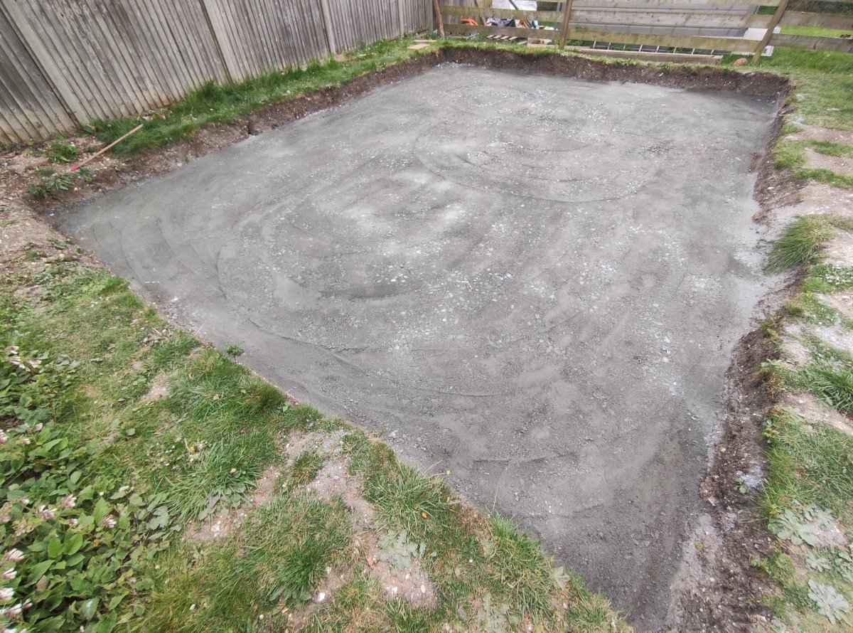 Completed Slab. 220mm deep. Unfortunately, in true UK style, no rain was predicted and concrete was left to dry. We had to go out for a few hours and of course, biblical downpours ensued and I couldn't get home. Eventually got a tarp over it but it had a lot of rain. days after it eventually dried but the surface became very chalky/dusty when dry. I was worried that the concrete was compromised for a long time but had it looked at and was reassured it was fine.