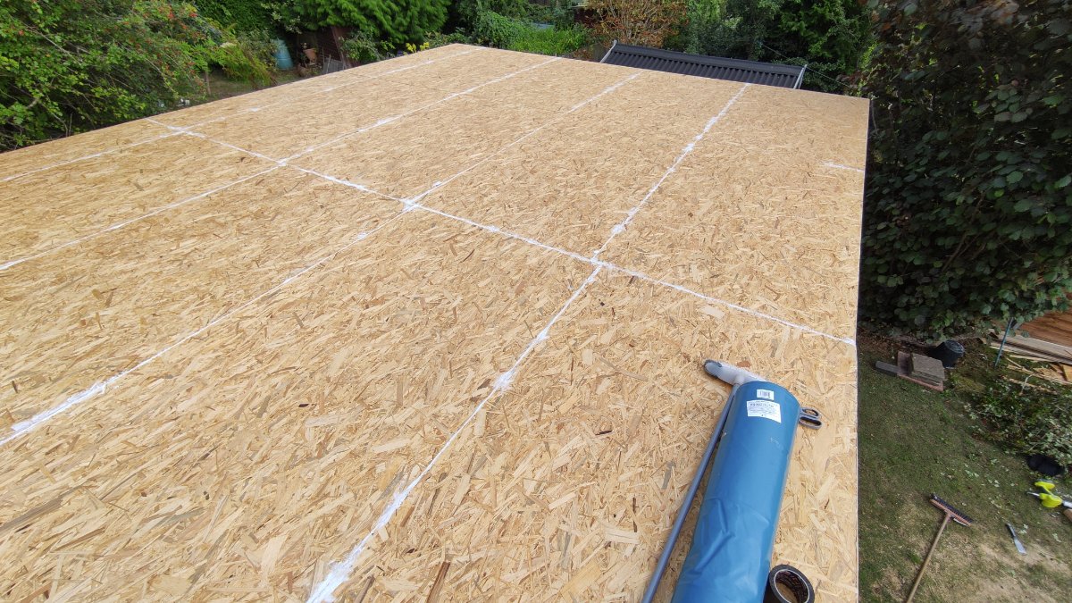 Day 338 - 1st September - Roof screwed down properly with better pics. Onto the first layer of OSB walls today.