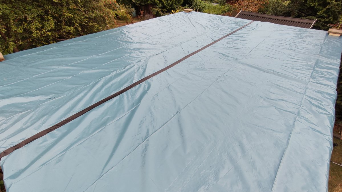 Woke up at 6am to sort this mess out. 1st job: up on roof, take off the tarp and dry everything out. Thankfully no sign of the rain predicted as yet. (feels like I'm starting to write a novel here :lol: ) Needed to take my 3-year-old to his first nursery today (1:30pm), so I made my goal for the morning to dry out the roof (sun was peeping!) and then seal it and get the new DPC layer on. that way at least the rain would not be coming back in.