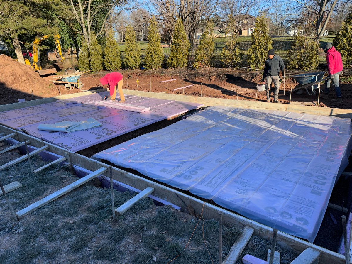 It is a single pad, I was going to have it as independent pads, but the added costs didn't make the effort worth it. I am not as concerned about internal transmission between live and control room as I am with sound out to the neighbors. When I did my basement studio, I was very happy with the isolation without separate pads so I think it should have similar performance here. That concrete is also 6" thick 5000 PSI, so it is very dense.
