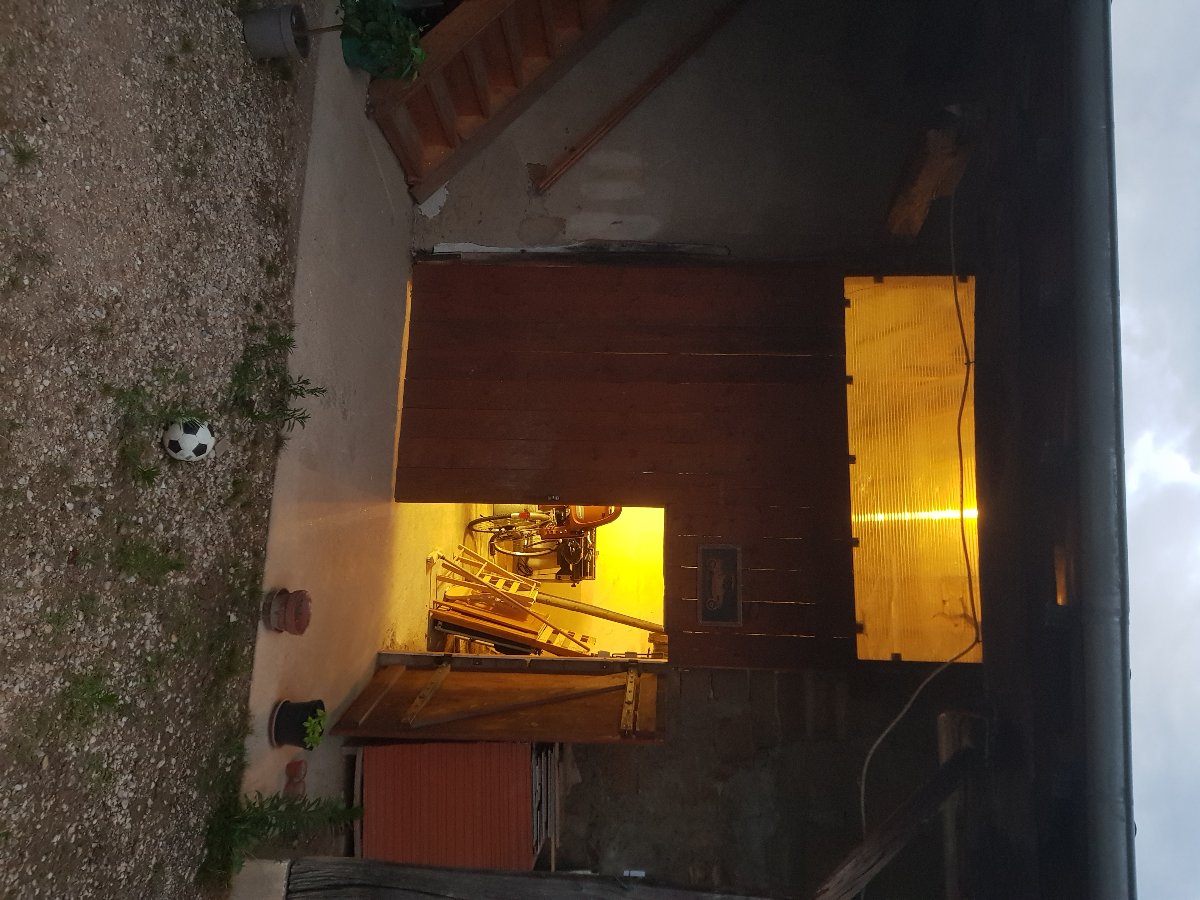 The outbuilding is attached to the house on one end, and another outbuilding on the other. The north side is the street, south side is the courtyard of the house. The room is 5x6m. The walls are 40cm thick rammed earth (Pisé – a traditional construction technique in my area of France). But one of the 4 walls is stone (40cm thick – this one has the other outbuilding on the other side). There’s an A frame ceiling 5.5m high at its peak, 4m high at the base. There’s a porous layer of wood and a tile roof. The room has a giant opening with a barn door of 3x4m. There’s a cement slab floor. The nearest neighbor is about 15m to the north, and 3 other neighbors are within 25m. See attached drawing and photos.