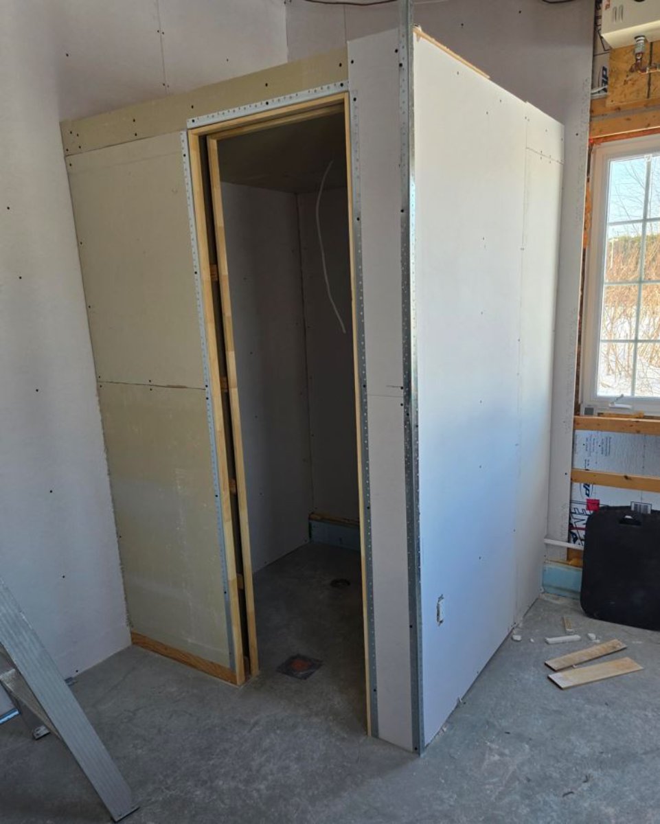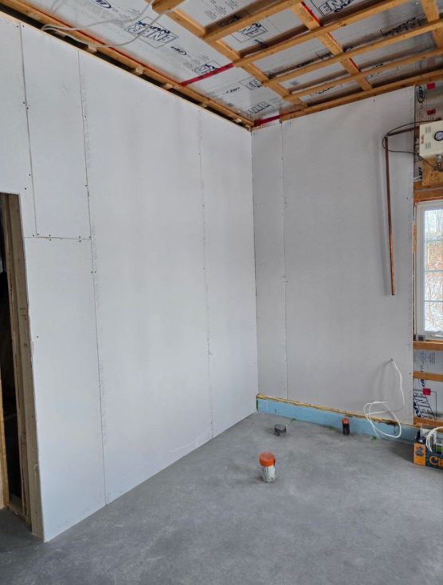 After some thought, I'm going to install a suspended acoustic ceiling in the gym. This will hide and soundproof the ERV ducts in the gym (however, in the studio they will be in a soffit). Next Monday, we should be able to finish the drywall. Then I'll have the plastering done by a contractor. I hope it will be available soon.