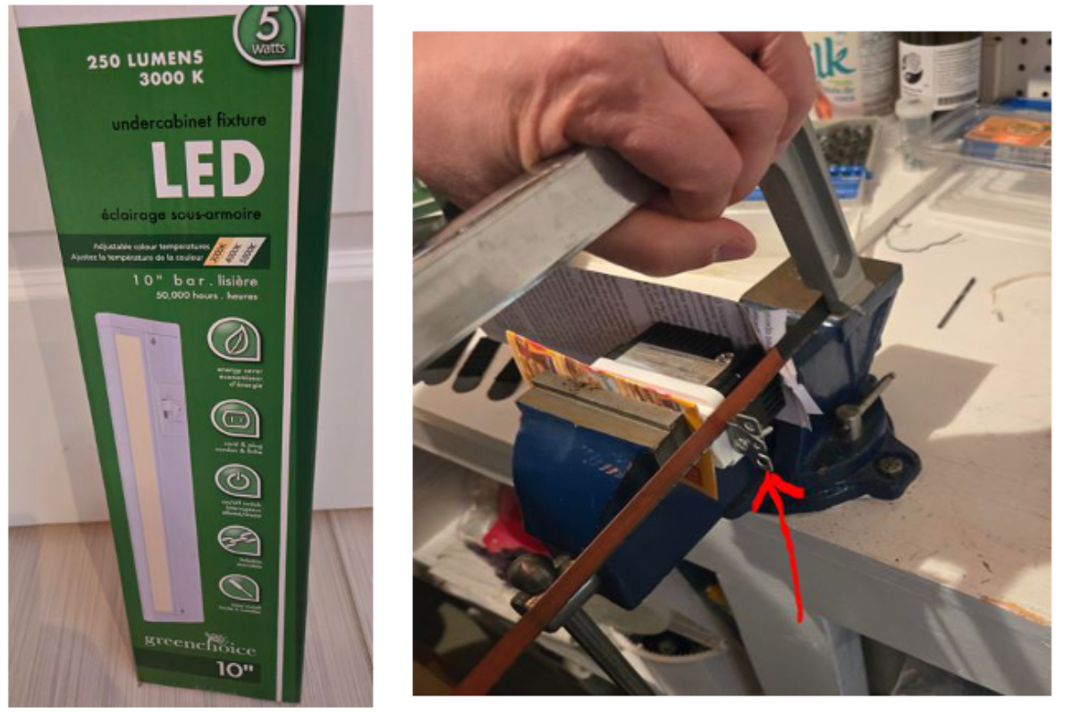 I found a 10 inch led light and a wifi electrical outlet (but I had to cut the 2 metal parts)