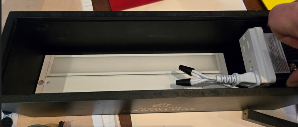 When it comes time to put it on the wall, I will only have to drill a hole in the back of the box to pass the electrical wire to connect the outlet. The outlet is WIFI and I can turn it ON/OFF remotely with my phone. I had to shorten the light wire. The installation is not very orthodox from an electrical point of view but is still safe.