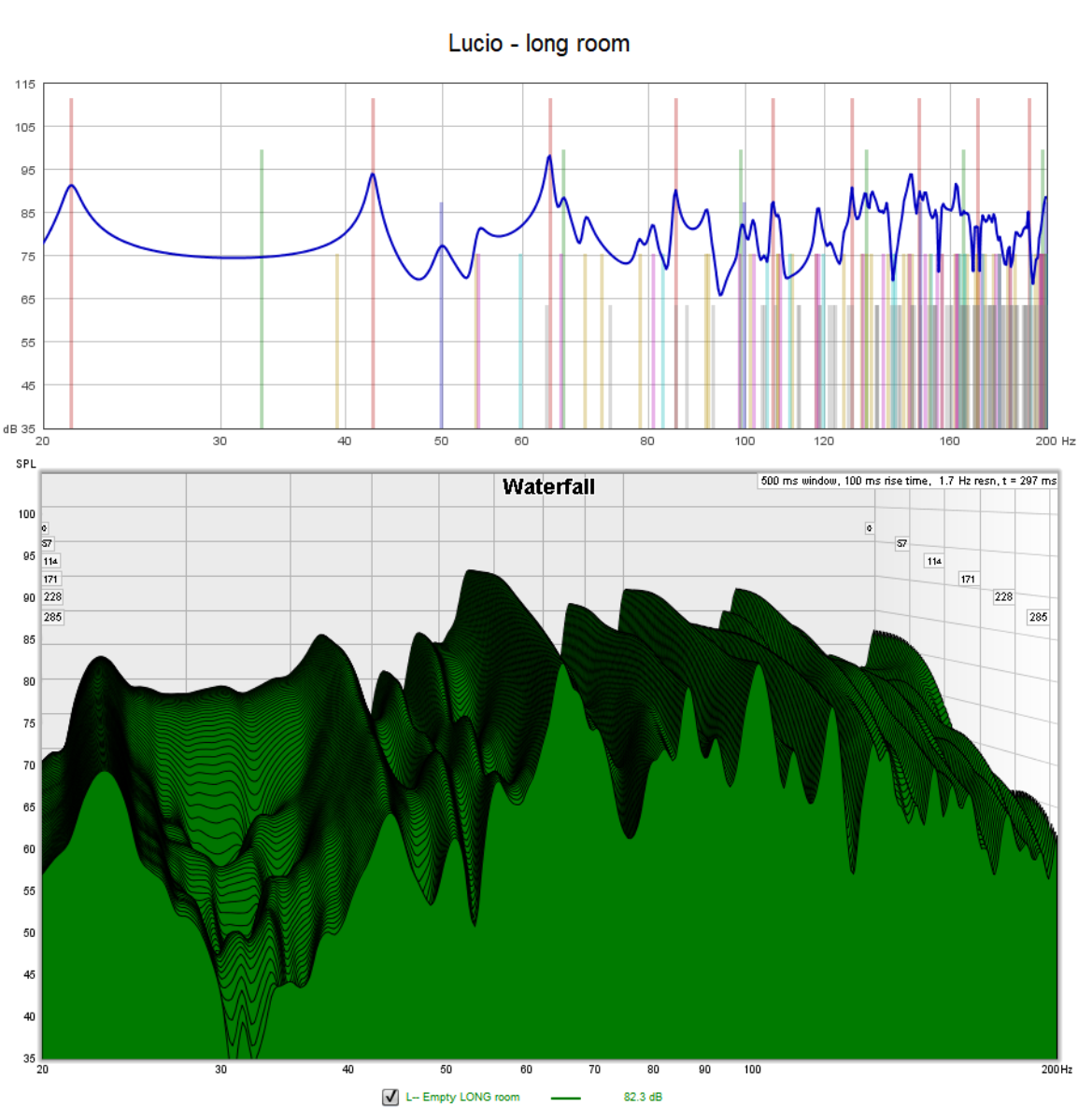 So....attached you can see the two measurements made with rew before and after the construction of the new partition which from 8.05mt in length has been reduced to 6.30m.