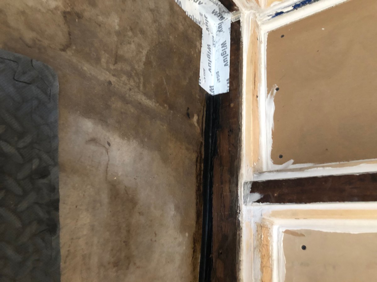 I sealed the sill plate (bottom plate) on the exterior frame. I used DAP 230 caulk, and then put Wigluv seal tape over it. There will be absolutely zero air, water, bugs, sound getting through the exterior frame.