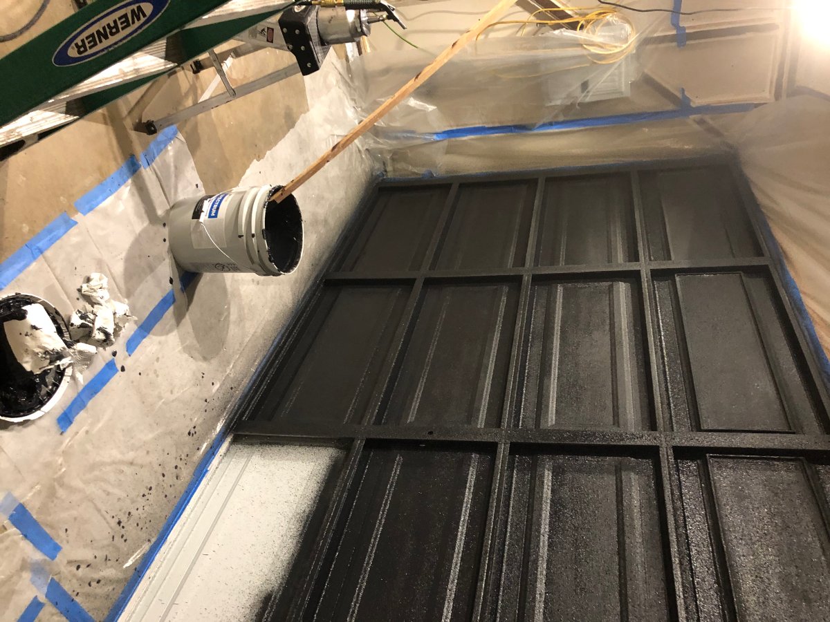 I also taped off around the inside of the garage door to prepare for the "Second Skin" sound deadening paint. This stuff is meant to be used on cars to deaden the reverberation inside the car, but can be used on anything metal. I'm excited to see how it will perform on the metal garage door. This is the stuff. https://www.secondskinaudio.com/sound-d ... rum-liquid