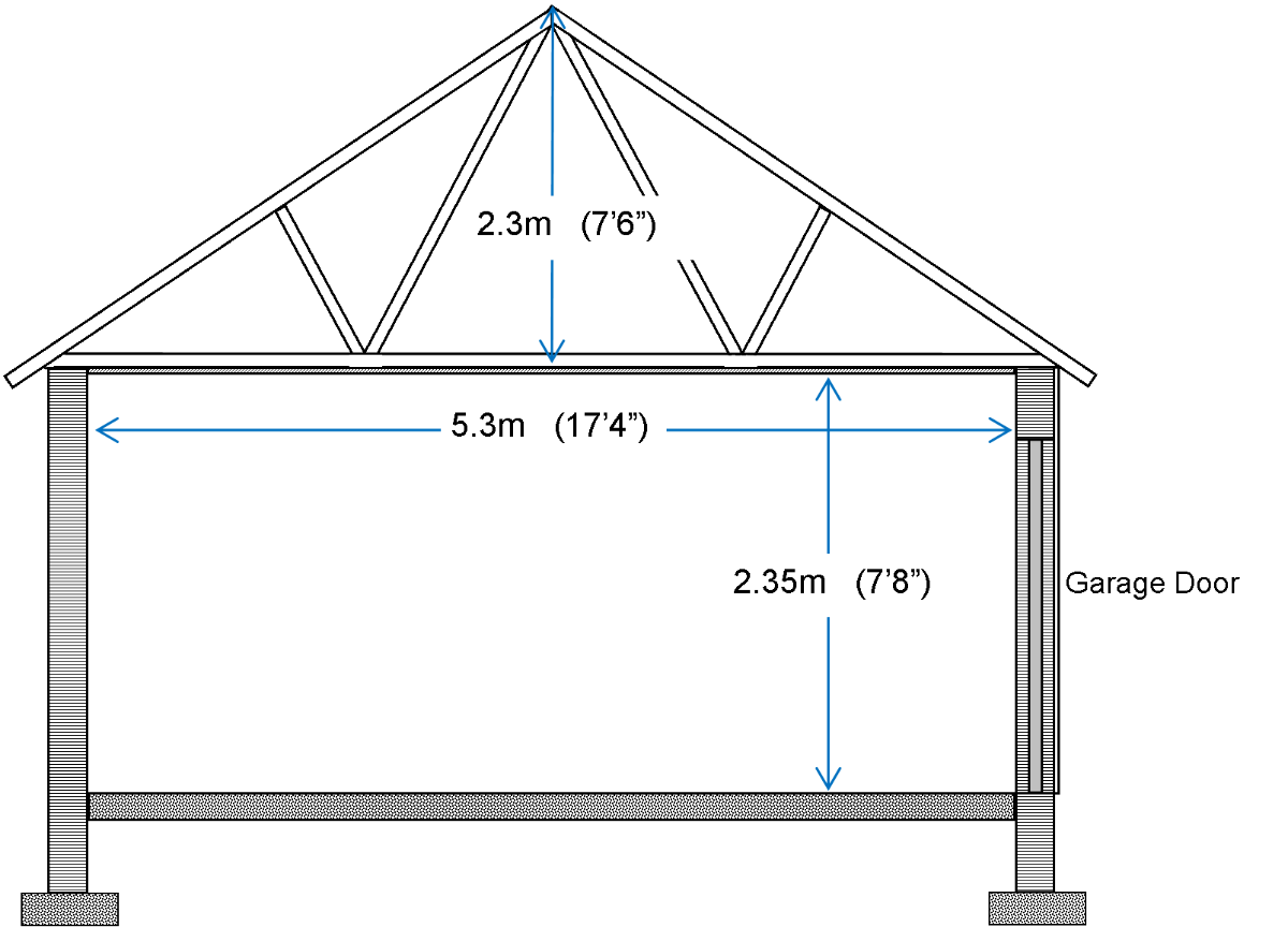The original garage size is 5.3m x 4.7m x 2.35m high.