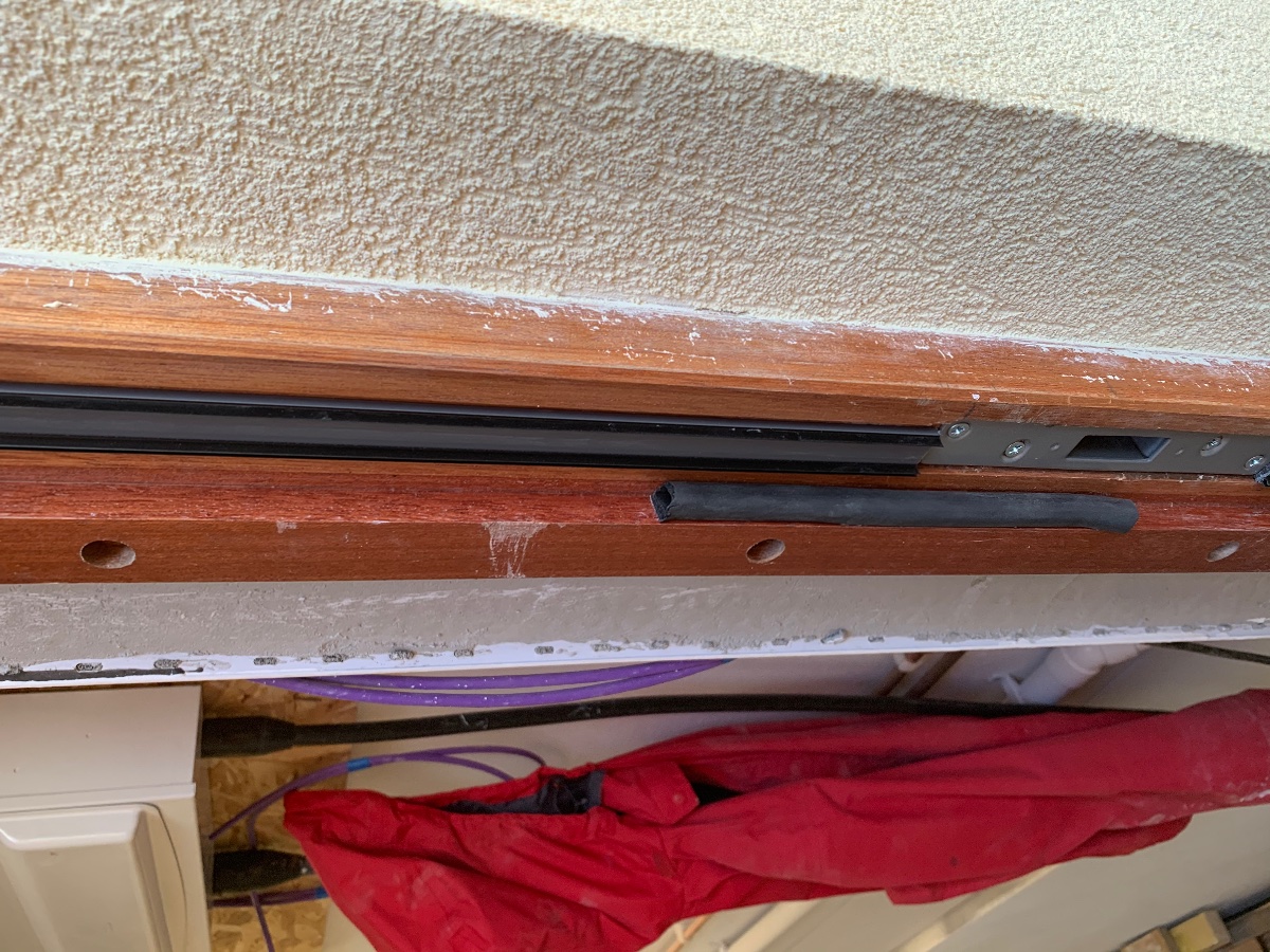 We got the steel on the door, beefed up the frame by screwing amd glueing 2x2 Sapele to the existing frame for additional fixing points and for the additional door stops. Also the drop seal fitted well. Just need to fit the seals, final fixing and stops (not in that order, oh amd the door closer. I think I’ll paint it white when the weather’s nice. I’ll look into flood barriers to go in front of the door but I’m fairly confident that we’ll have two sets of seals that are used in flood doors commercially and the door is massive amd stiff enough to take the weight of the water.