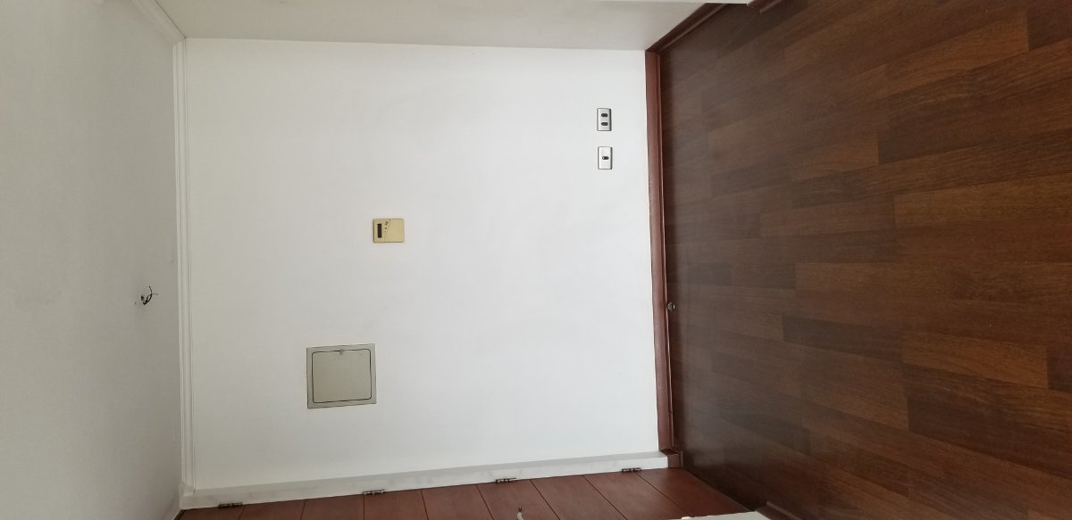 The rear wall seems to also be the main entrance to your apartment: have you considered maybe putting a partition across the rear of the room, to improve isolation out to the hallway, and your neighbors? That would also also for better treatment back there, I think. Knowing how Chilean rental agreements work, I'm pretty sure that you won't be allowed to build a permanent partition there, but some screws into the walls and ceiling could hold the partition in place, then when you leave, just take out the screws, dismantle the partition, fill the screw holes, and paint. It might be an option for you. Just an idea....