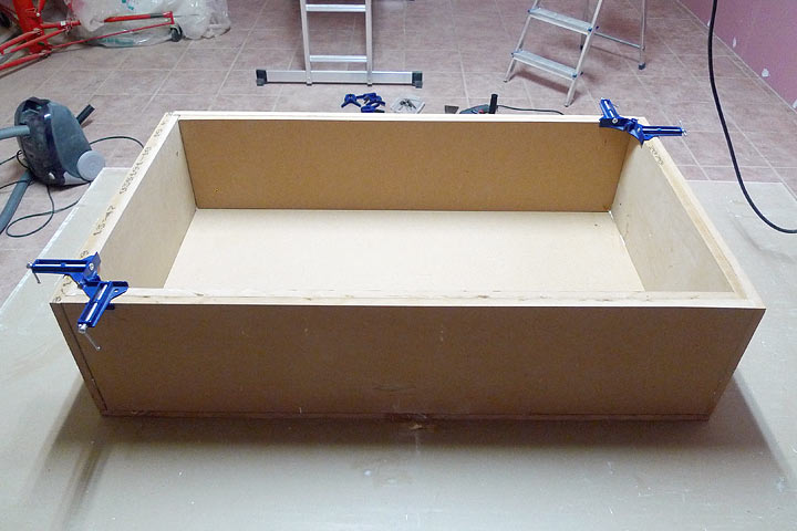 I went to the DIY shop to buy some clamps but the longest ones were not long enough so I have opted to glue and screw and apply pressure with whatever weighty things I have to hand.